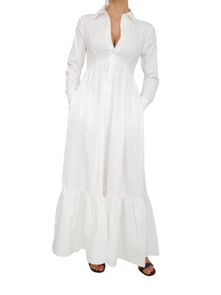 Abito lungo Blugirl in viscosa panna e stampa pizzo a contrasto