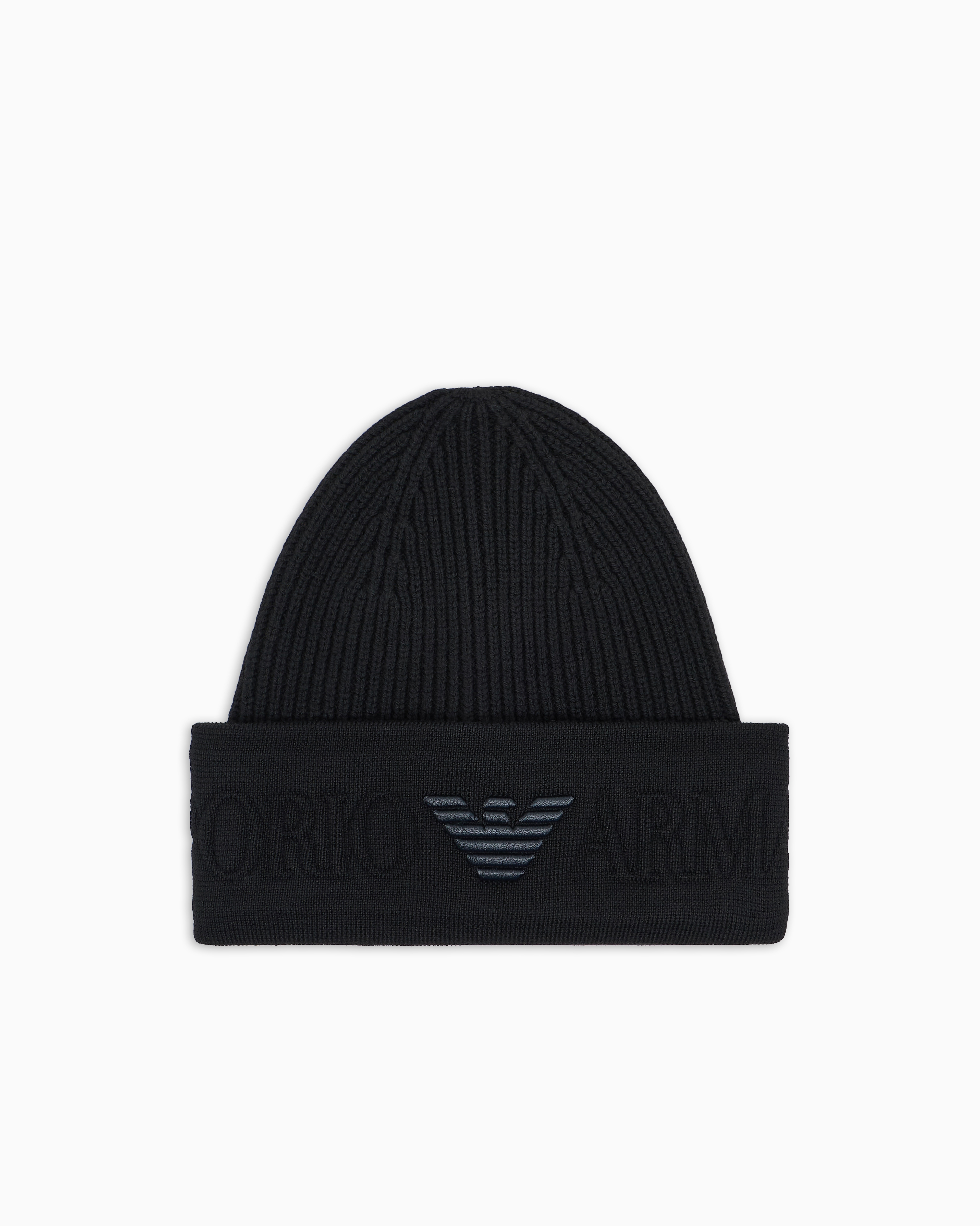 Brand: EMPORIO ARMANIBerretto in maglia di lana Emporio Armani caratterizzato da maxi logo a rilievo e aquila ricamata sul risvolto. Un accessorio morbido e caldo che completa i look invernali.