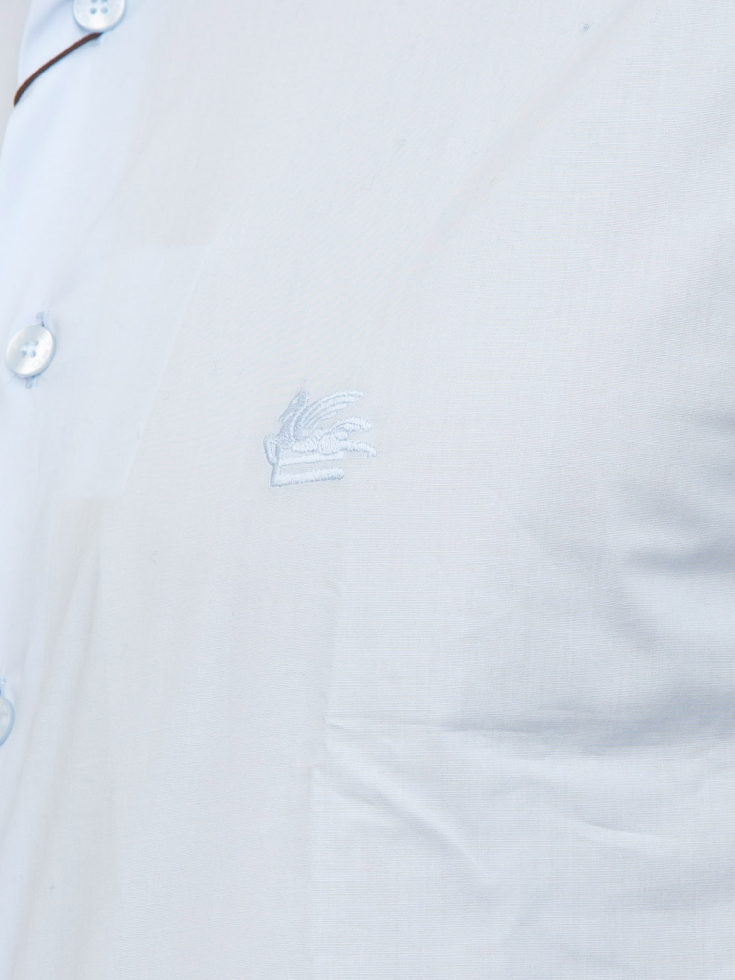Brand: ETROCamicia a manica lunga Etro uomo realizzata in puro cotone con vestibilità regular e chiusura con bottoni. Arricchita da monogram ETRO e Pegaso ricamati in tono sul petto. Ideale sotto ogni outfit. Il modello è alto 1.90m e indossa la taglia 40.