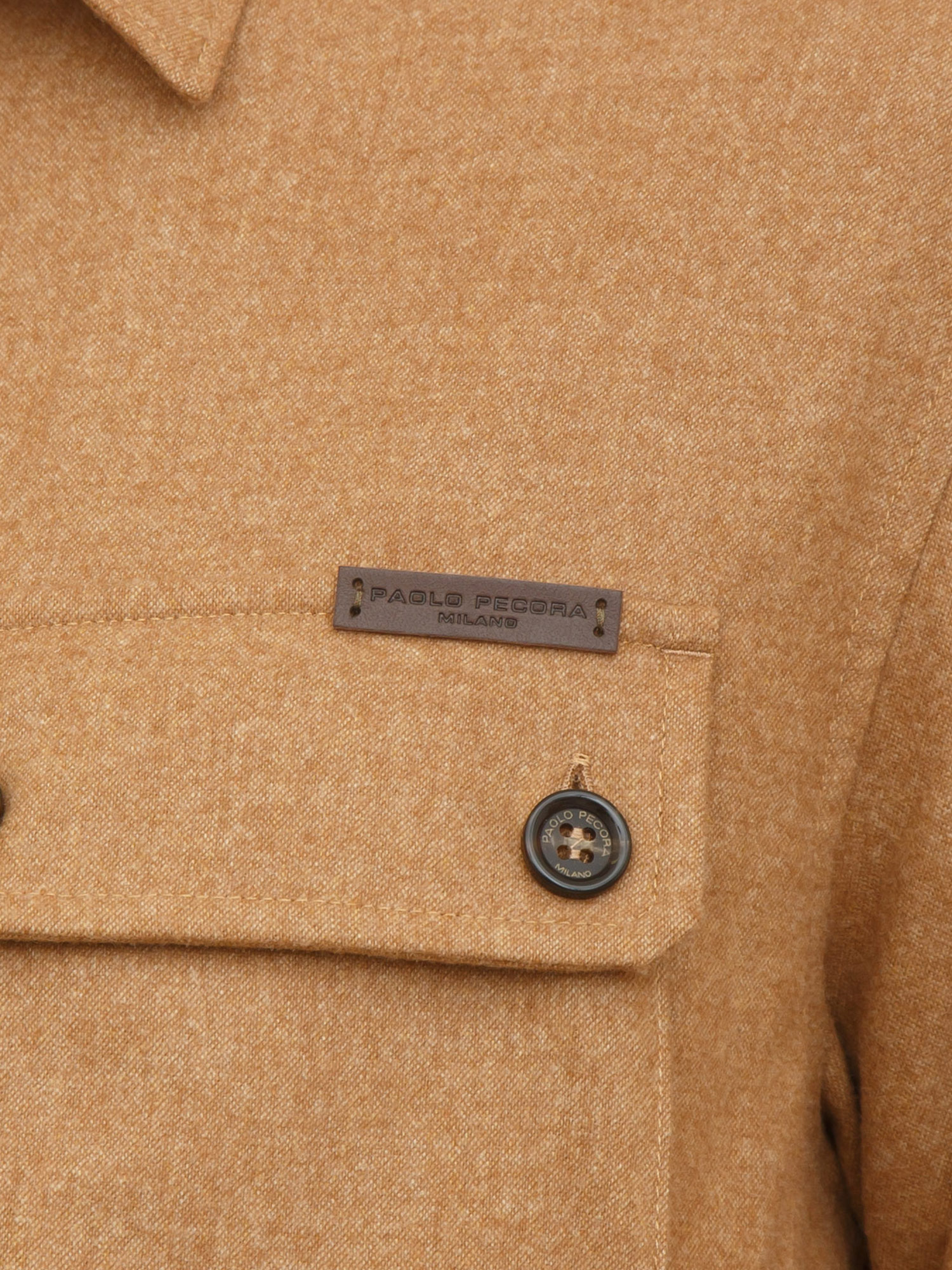 Camicia overshirt Paolo Pecora in lana cammello con tasconi