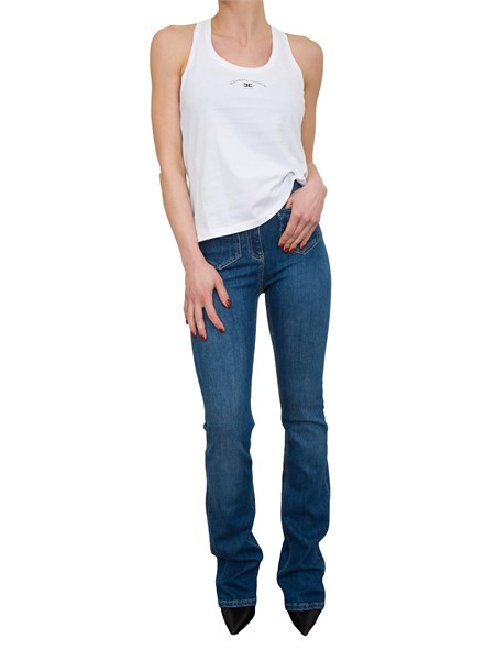 Brand: ELISABETTA FRANCHITop in jersey di cotone con vestibilità regular. Il capo ha scollo a vogatore e fondo asimmetrico. Caratterizzato dalla stampa con logo frontale, è impreziosito da piccole borchie applicate.