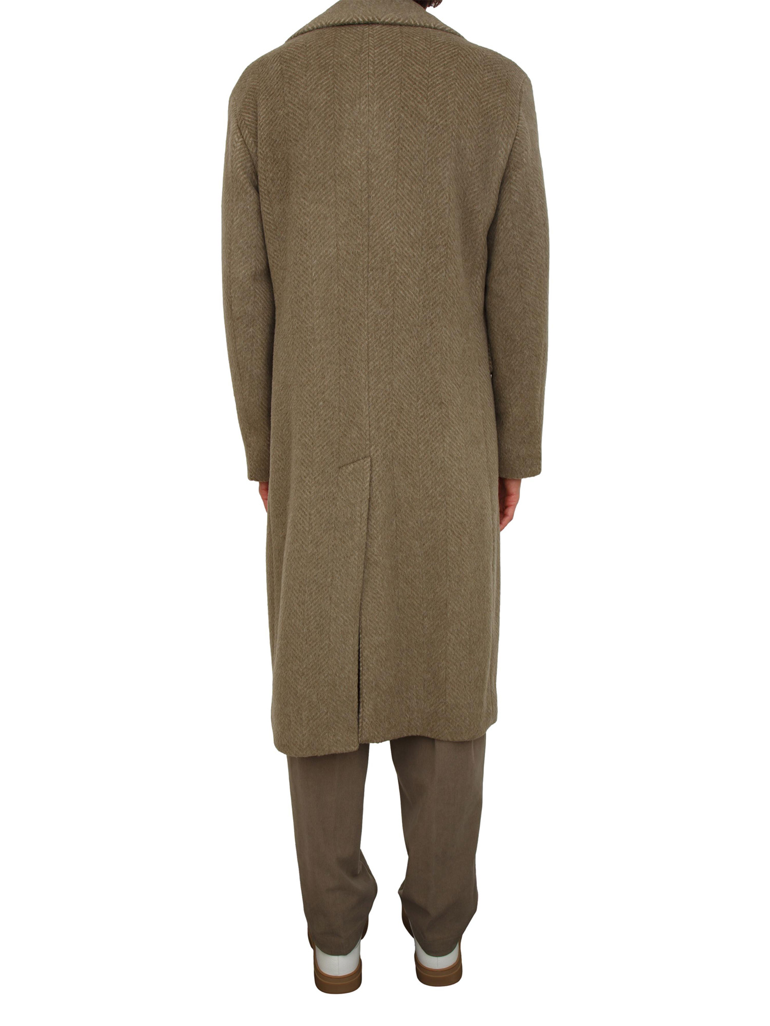Cappotto doppiopetto Boss uomo in alpaca e lana verde spigato