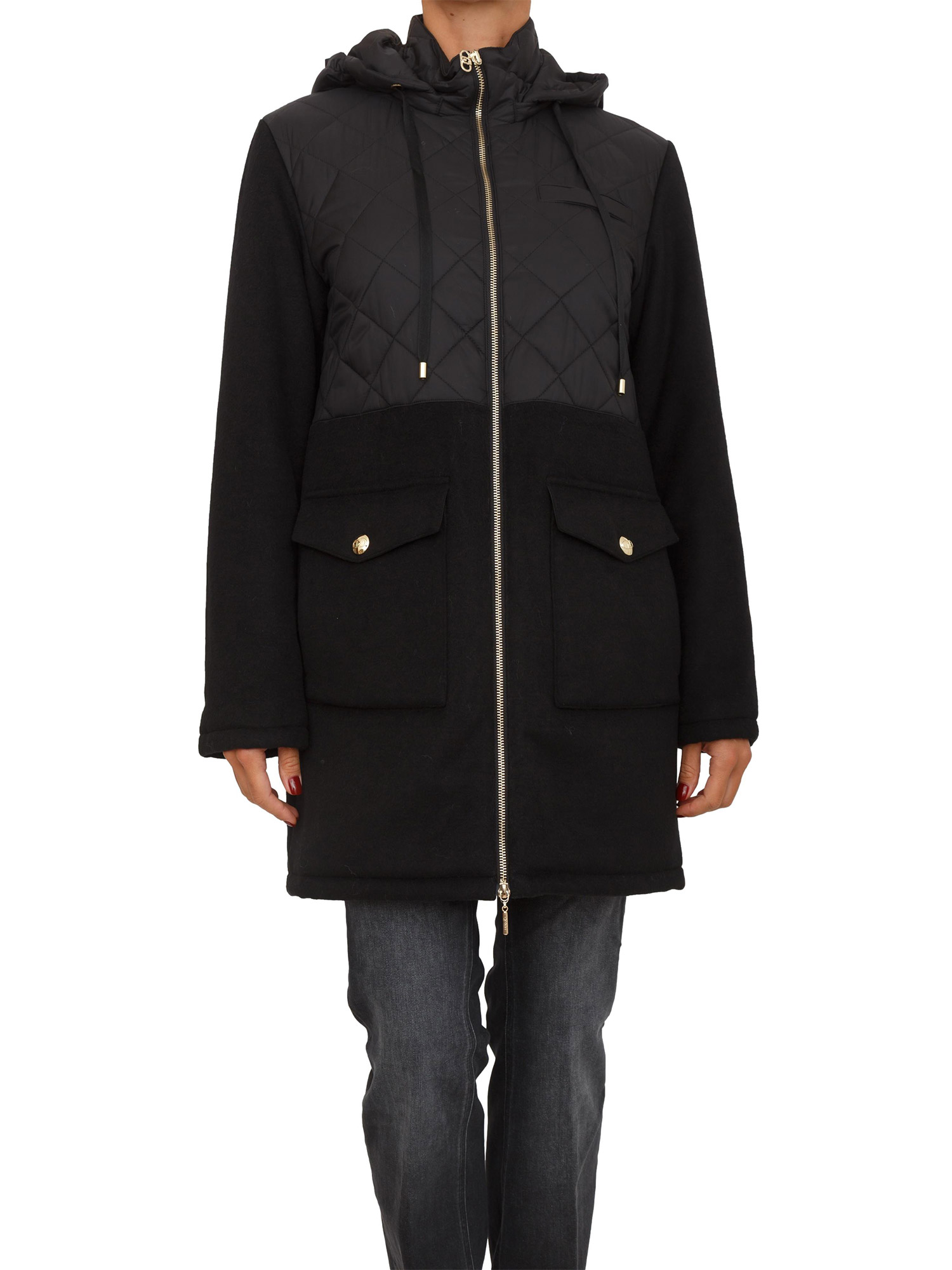 Cappotto parka Liu Jo donna in panno misto lana e nylon nero