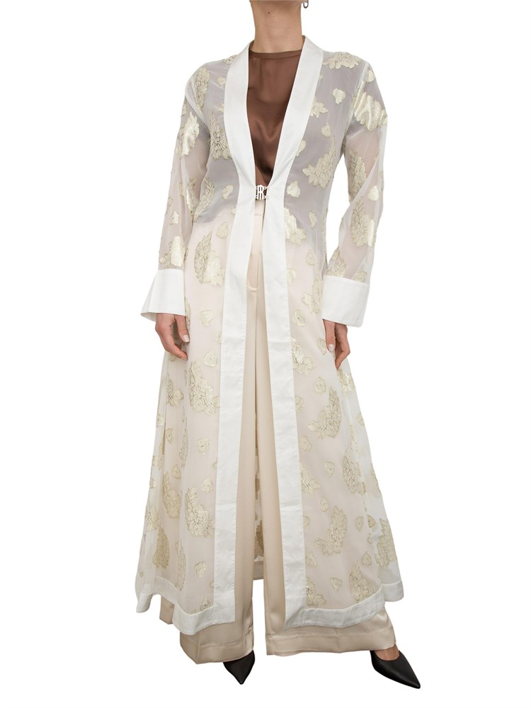 Brand: FRACOMINAKaftano lungo Fracomina con vestibilità regular ed inserti in lurex. Ideale come capospalla sopra un jeans o un pantalone elegante, oppure come copricostume per le tue serate estive.La modella è alta 1.72 e indossa la taglia S.