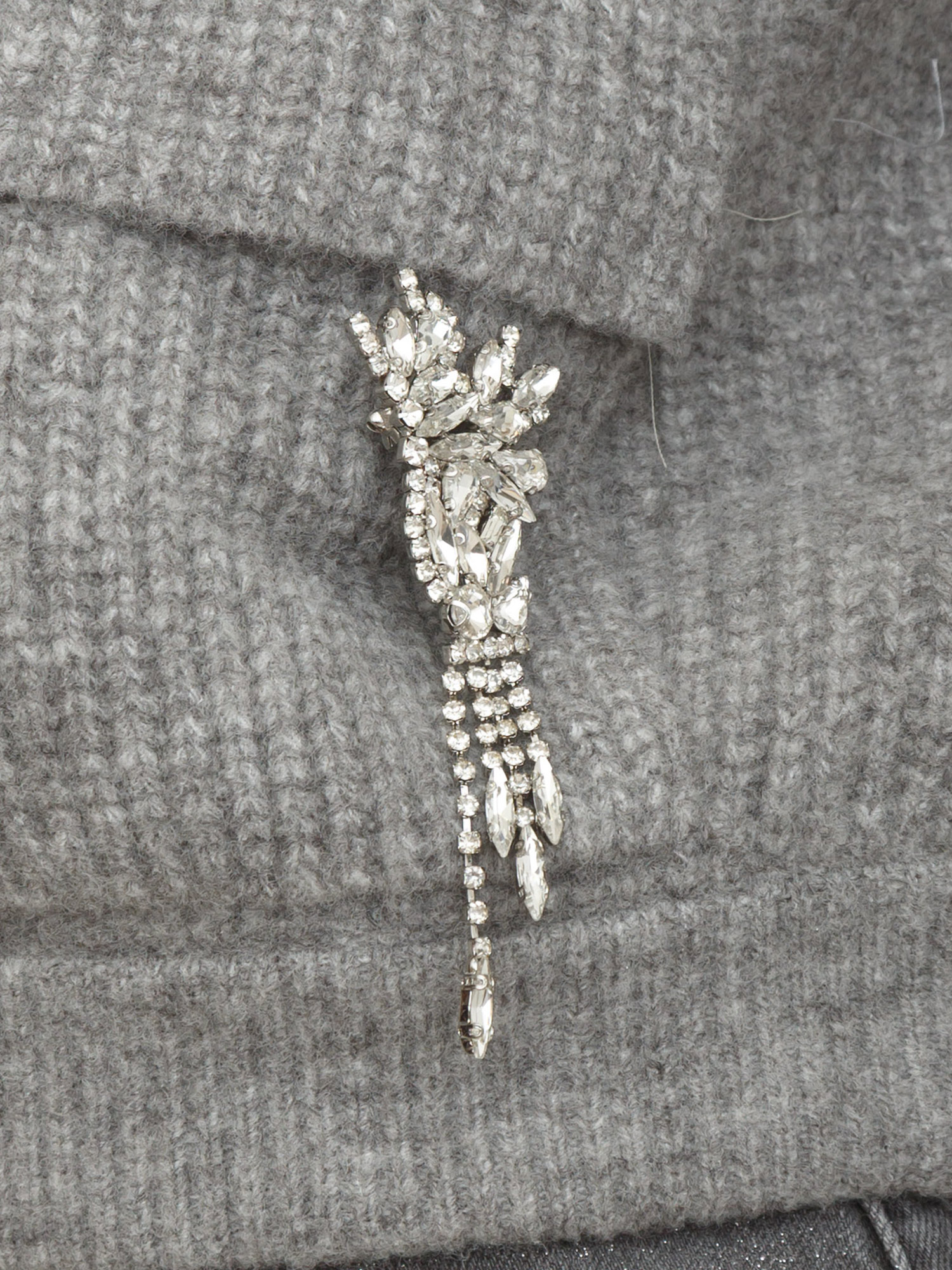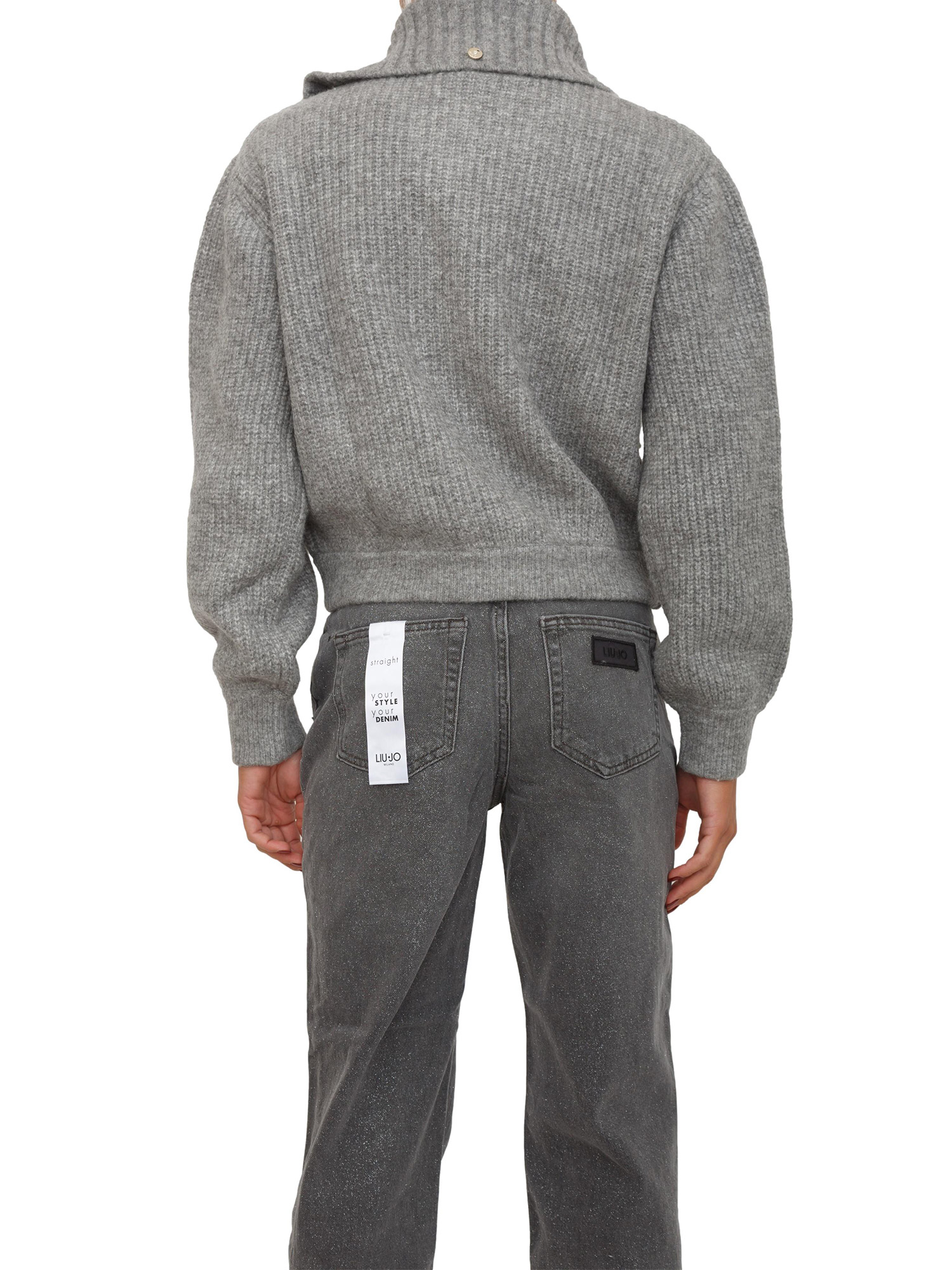 Cardigan Liu Jo donna in misto lana grigia a coste con spilla removibile