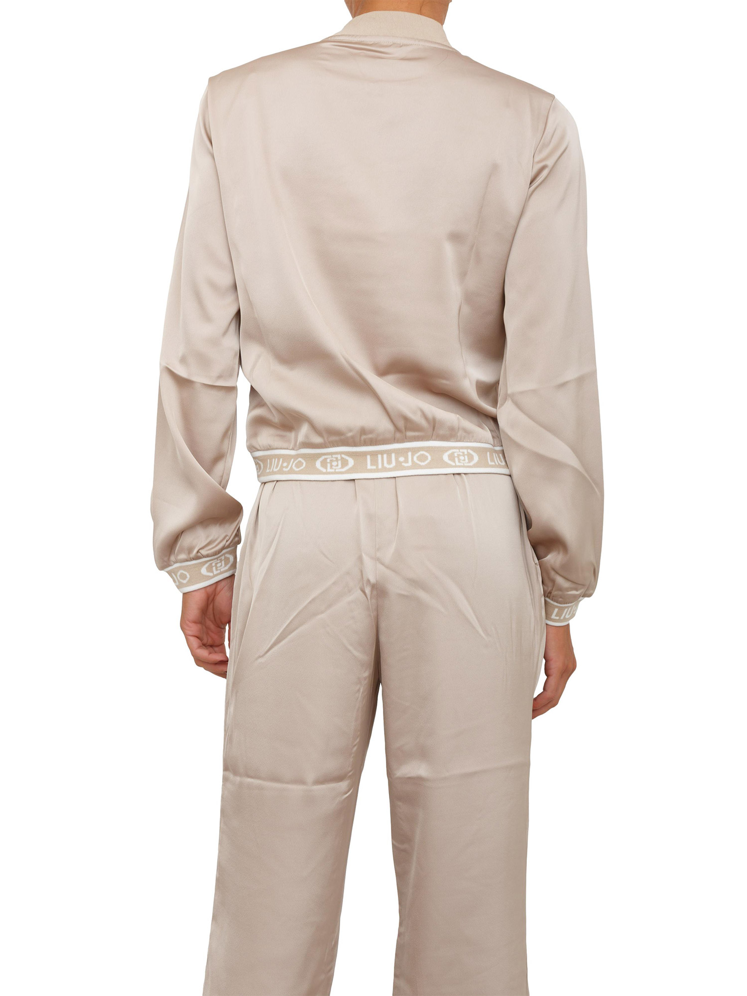 Brand: LIU JOFelpa bomber Liu Jo donna realizzata in raso con dettagli in maglia con logo jacquard. Colletto bomber, tasche laterali e tirazip logata. La modella è alta 1.72 e indossa la taglia XS.