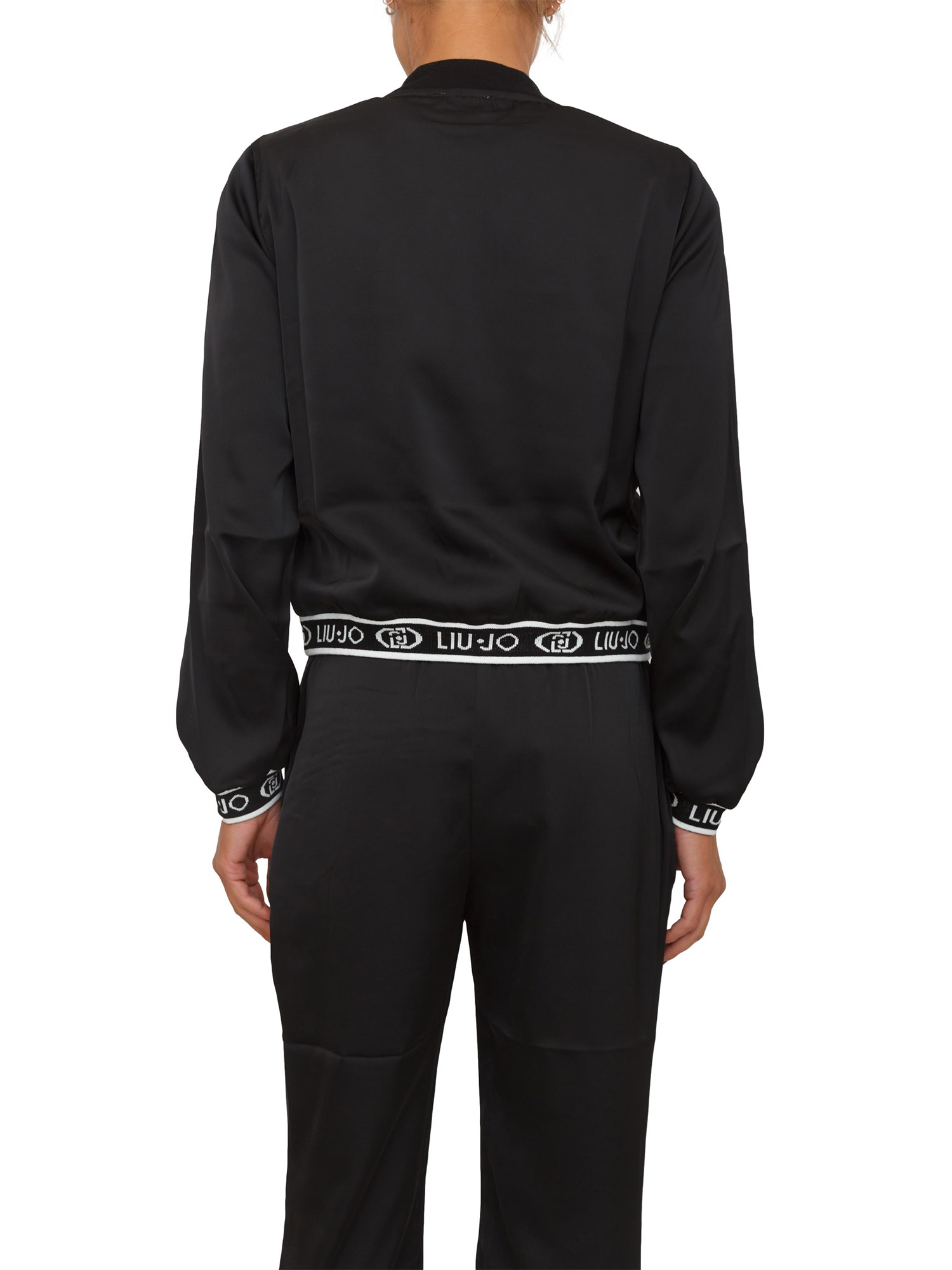 Brand: LIU JOFelpa bomber Liu Jo donna realizzata in raso con dettagli in maglia con logo jacquard. Colletto bomber, tasche laterali e tirazip logata. La modella è alta 1.72 e indossa la taglia XS.