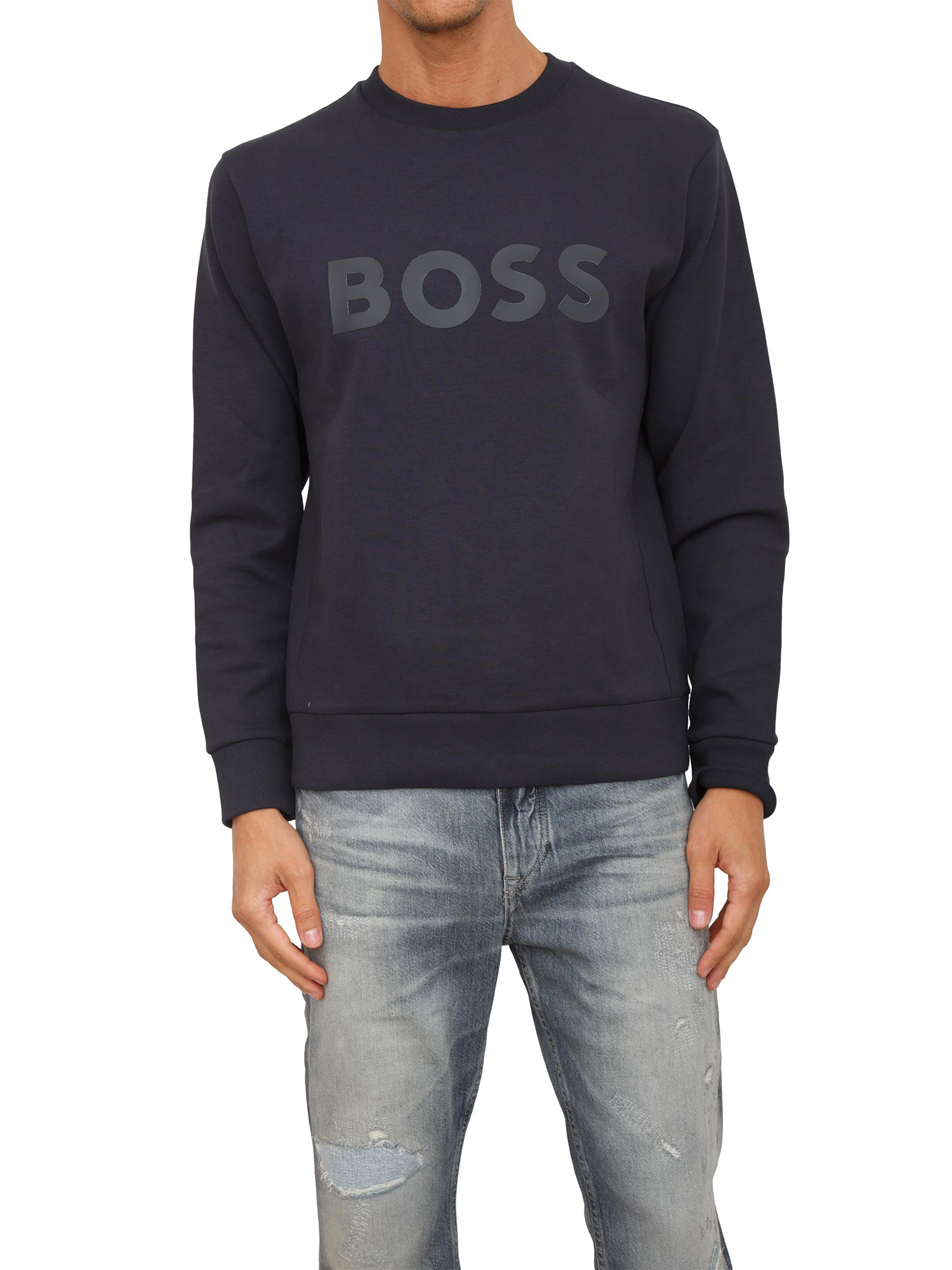 Brand: BOSSFelpa BOSS uomo versatile in cotone elasticizzato con vestibilità regular e girocollo. Questo capo presenta logo lettering applicato tono su tono davanti con polsini a costine. Il modello è alto 1.90m e indossa la taglia M.