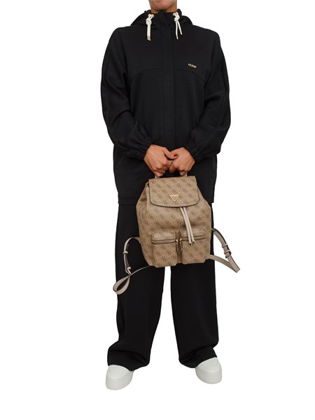 Felpa EA7 Emporio Armani in misto cotone beige con cristalli logo