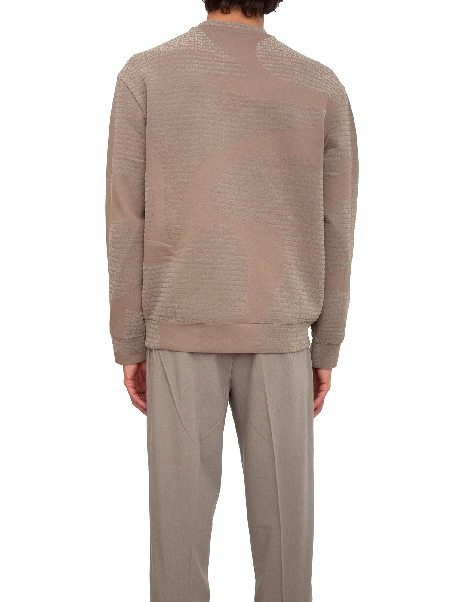 Felpa girocollo uomo Emporio Armani in misto cotone beige e logo jacquard