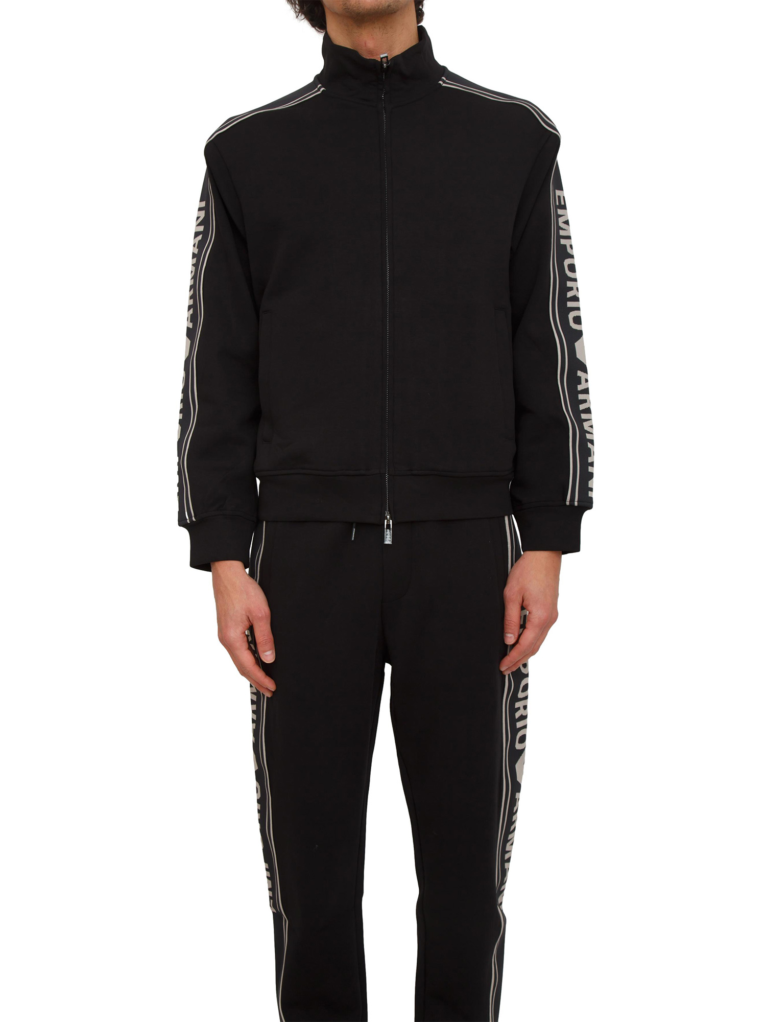 Felpa uomo Emporio Armani in double jersey nero con logo jacquard