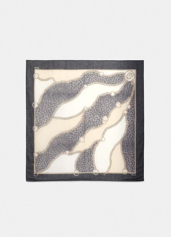 Brand: LIU JOFoulard Liu Jo in morbido tessuto con stampa animalier e catena. Misure: 120 x 120 cm.