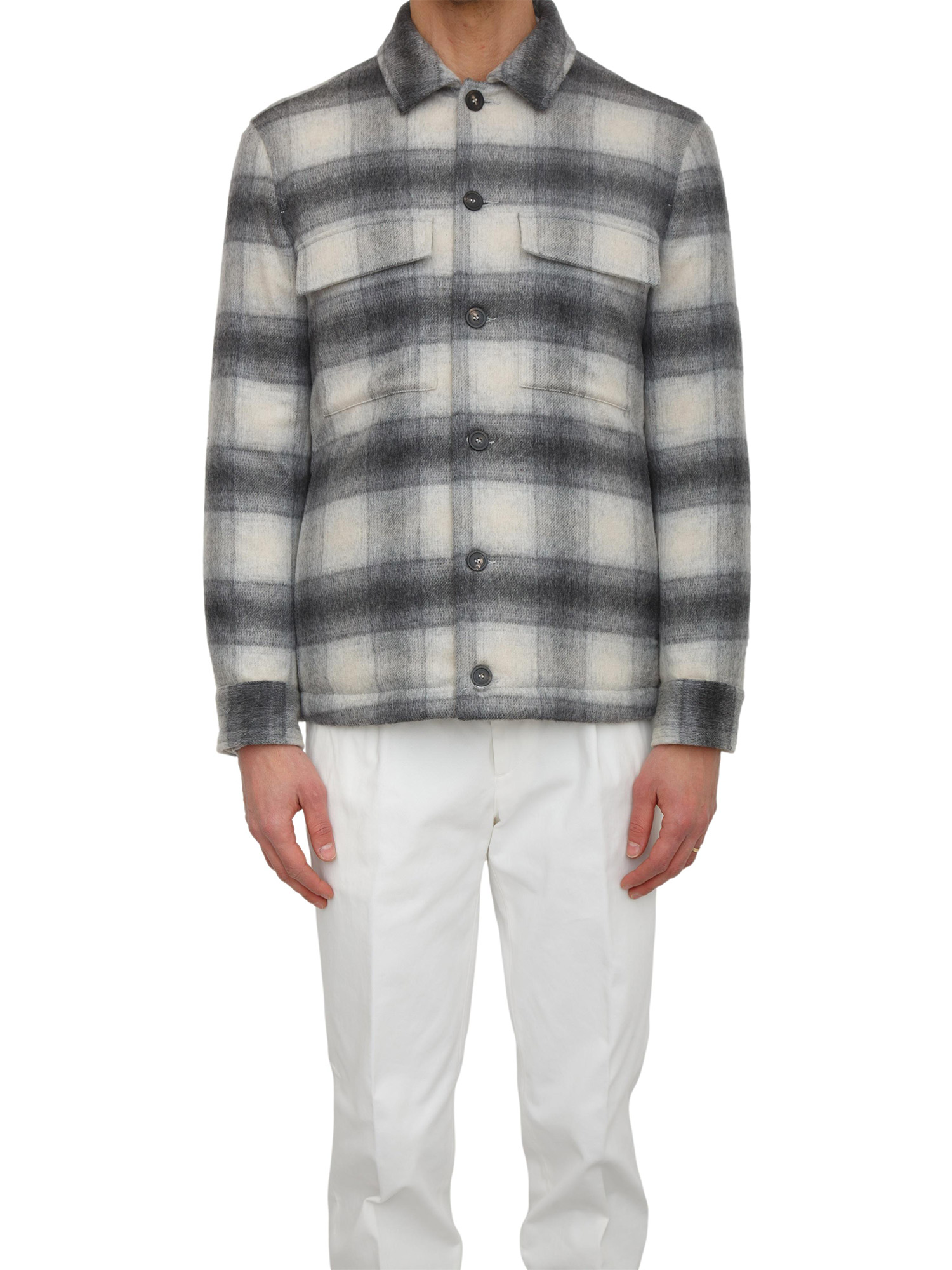 Giacca camicia Peserico uomo in misto lana grigia a quadri