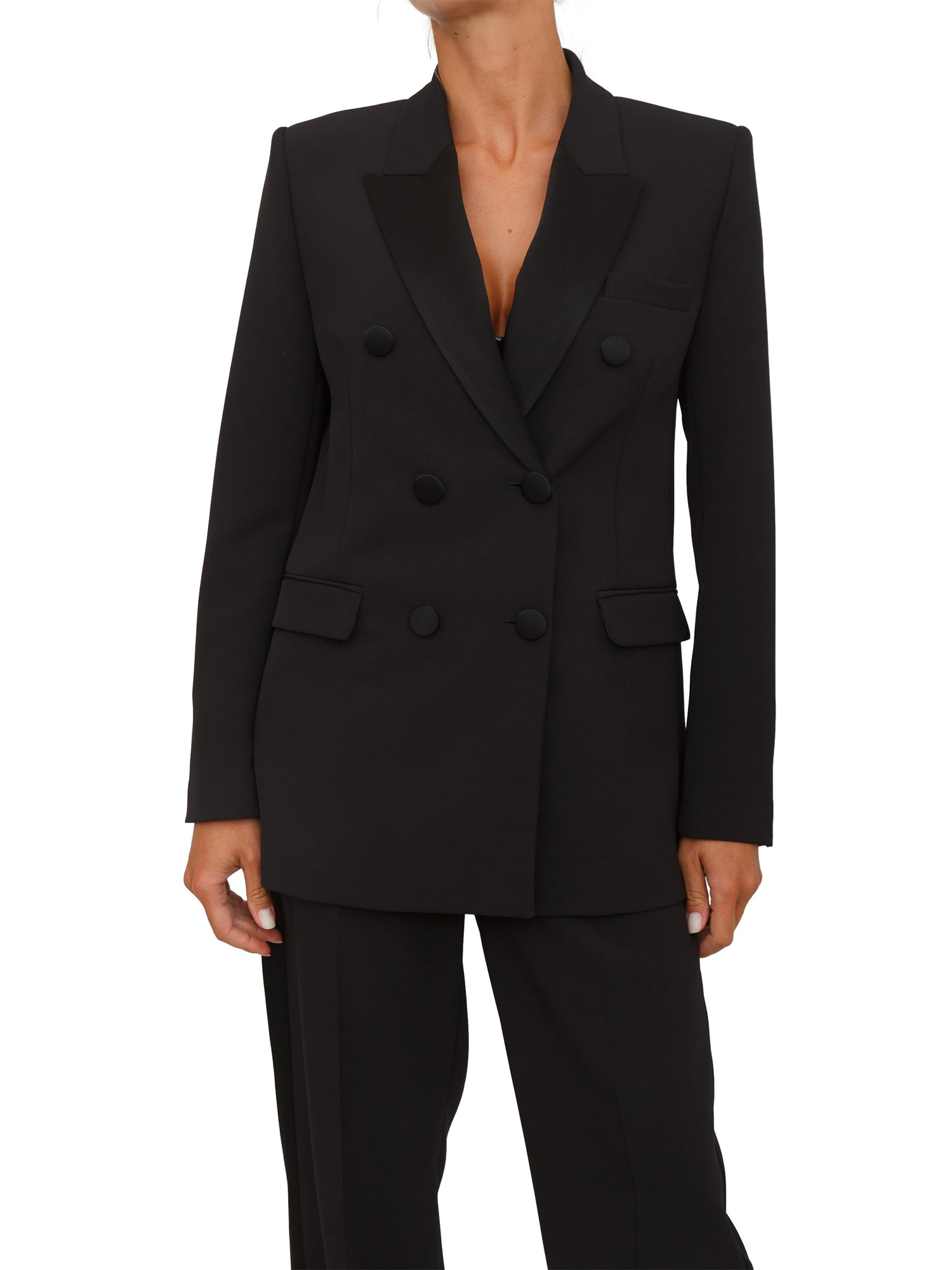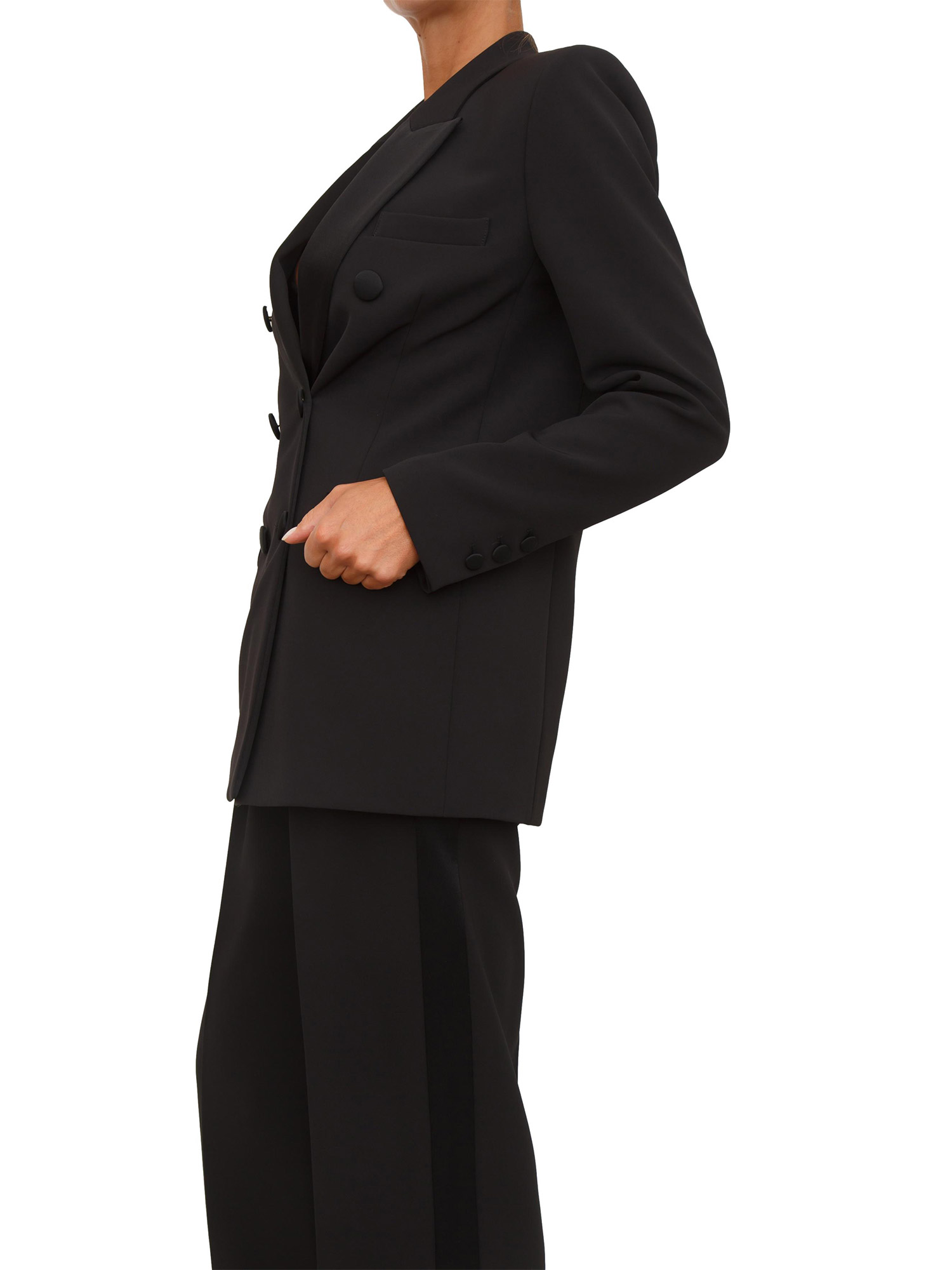 Giacca Elisabetta Franchi in crêpe nero con dettagli in raso