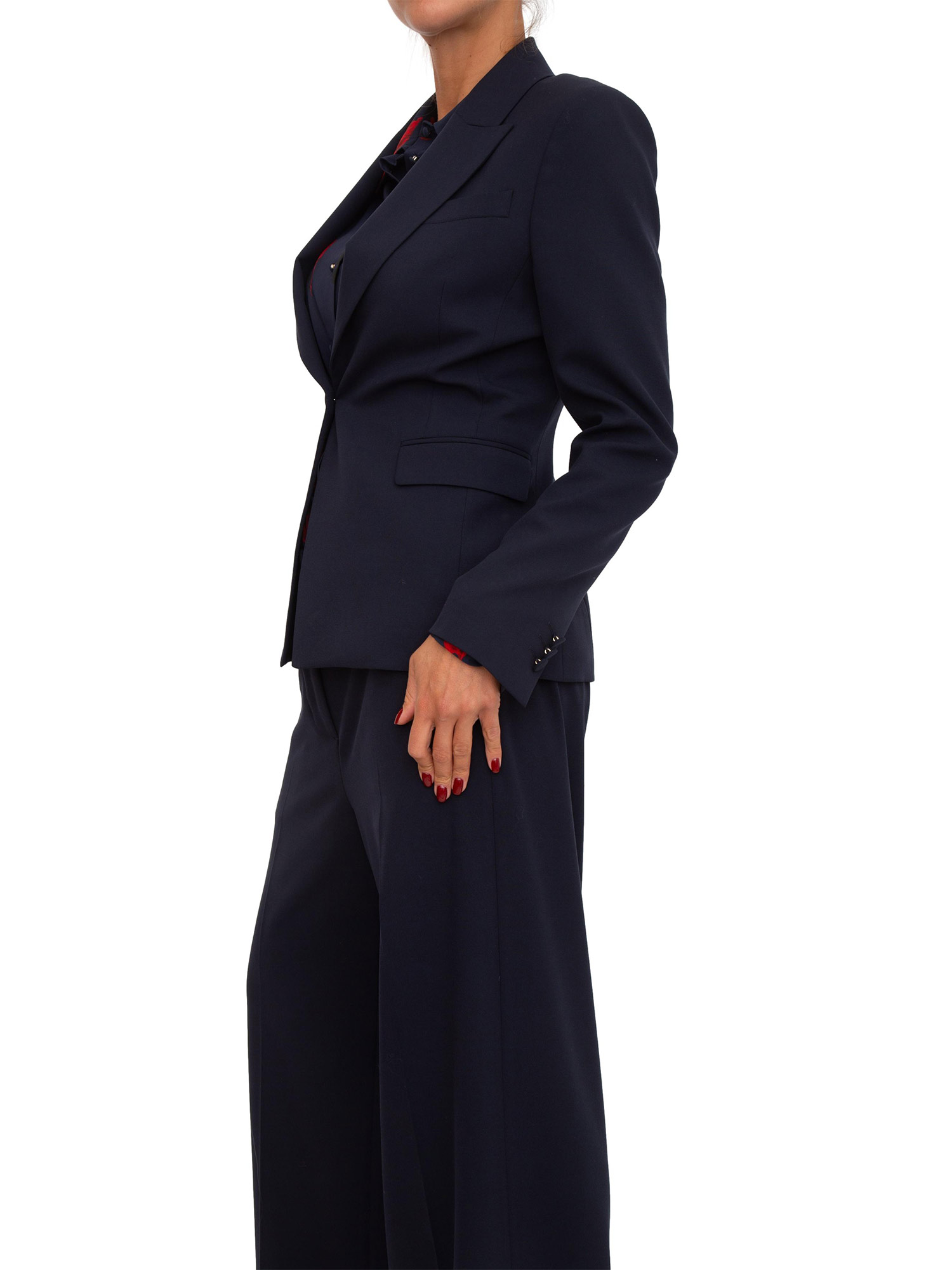 Brand: BLUGIRLGiacca Blugirl in flanella di viscosa stretch abbinata al top in pizzo a fantasia floreale con scollatura a V smerlata. Giacca con chiusura monopetto a un bottone piatto ricoperto e tasche con patta e taschino al petto. La modella è alta 1.72 e indossa la taglia 40.