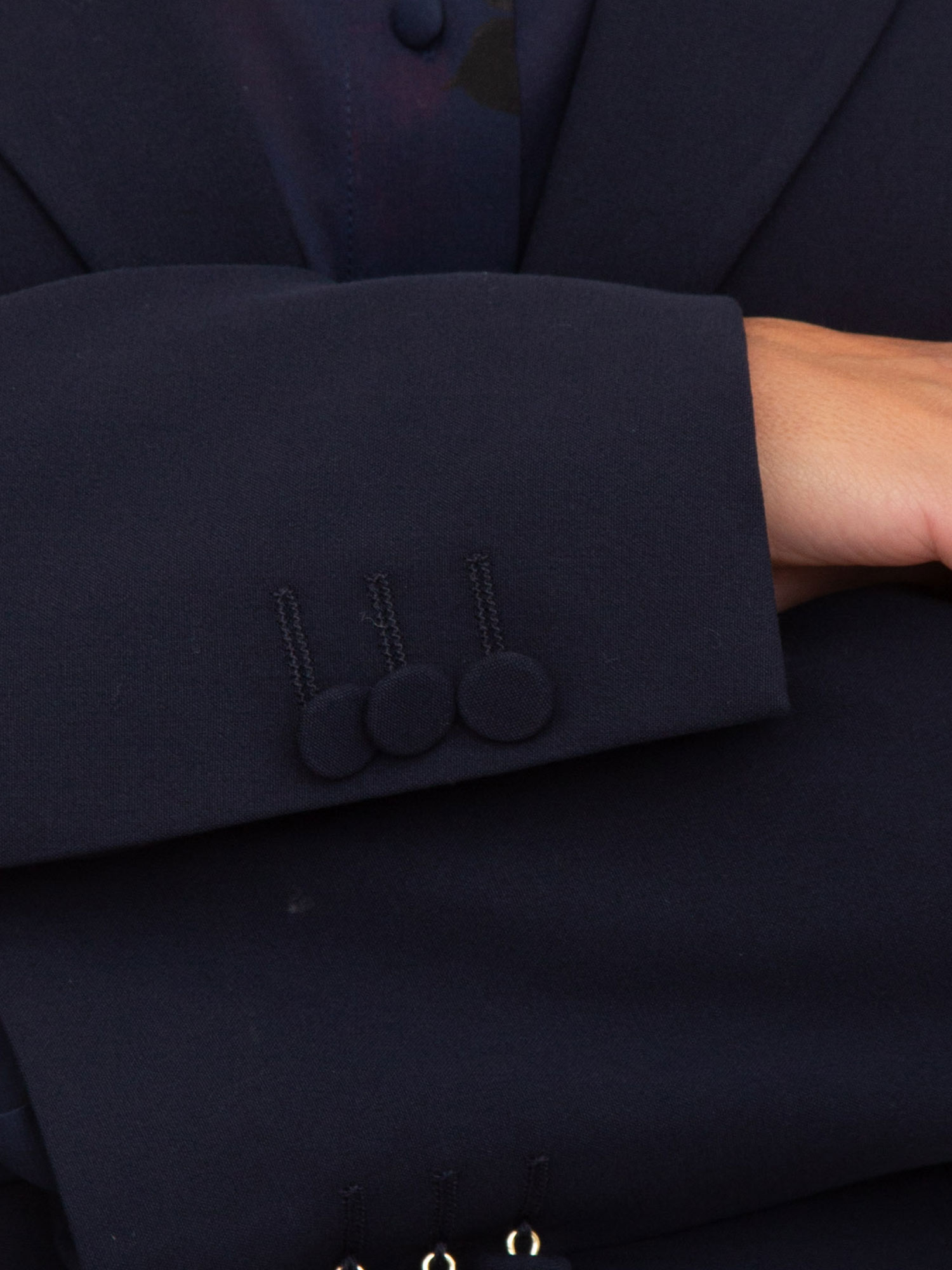 GiaccaBlugirl in flanella di viscosa blu + top in pizzo
