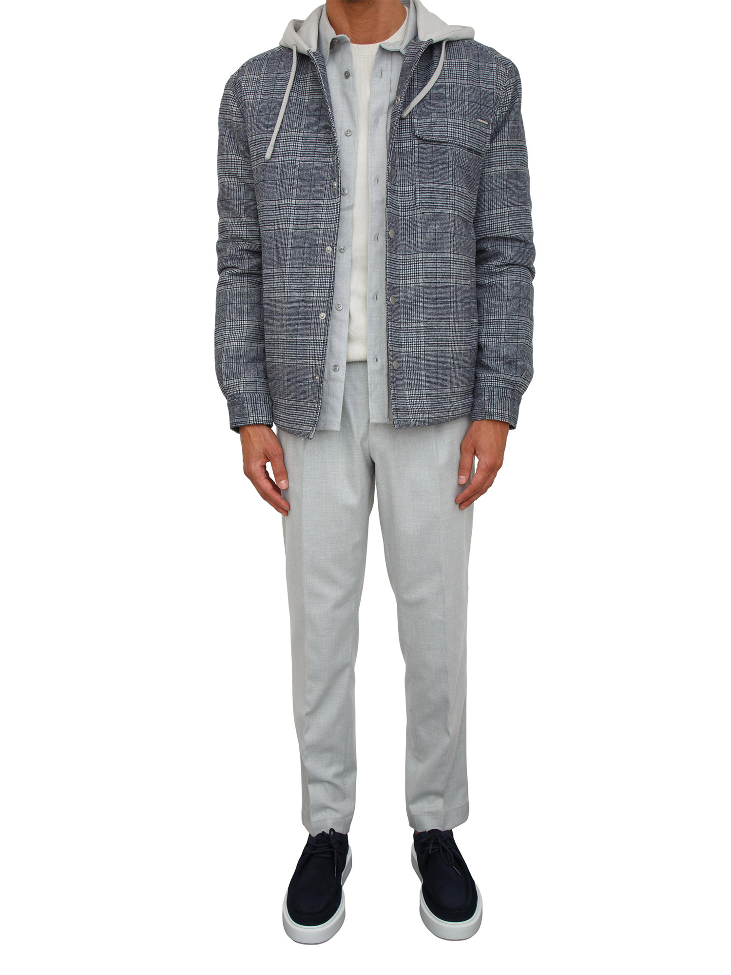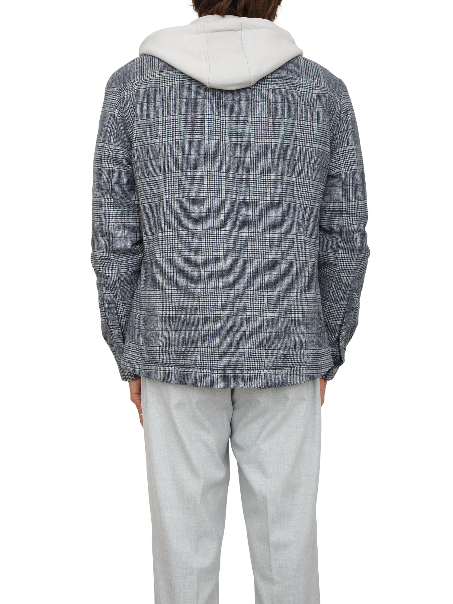Giubbino Antony Morato in misto lana motivo principe di Galles e cappuccio in cotone grigio