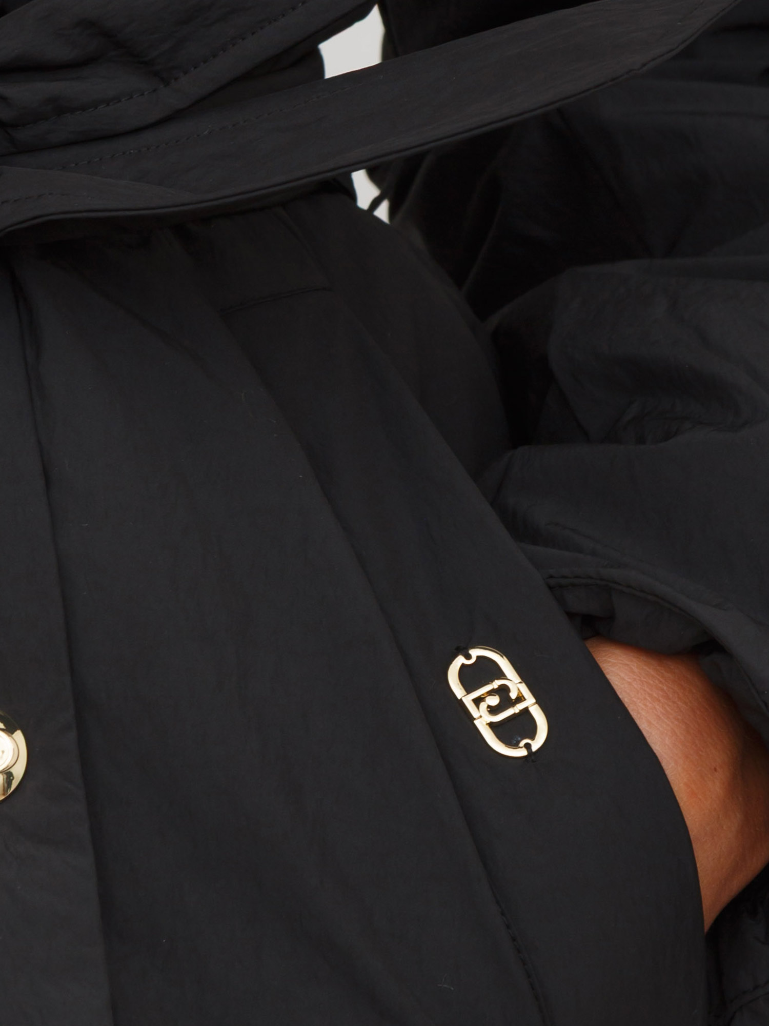 Brand: LIU JOGiubbino corto Liu Jo donna realizzato in nylon con calda imbottitura in ovatta e cintura in abbinamento. Modello dotato di comode tasche e chiusura interna con zip ed esterna con doppiopetto. La modella è alta 1.72 e indossa la taglia XXS.