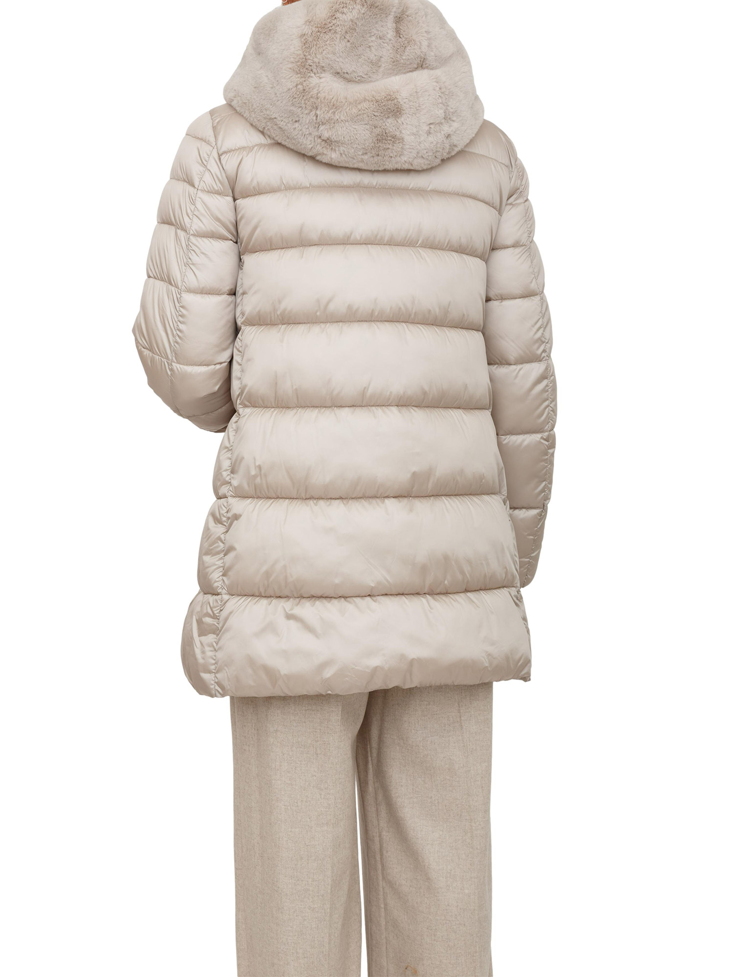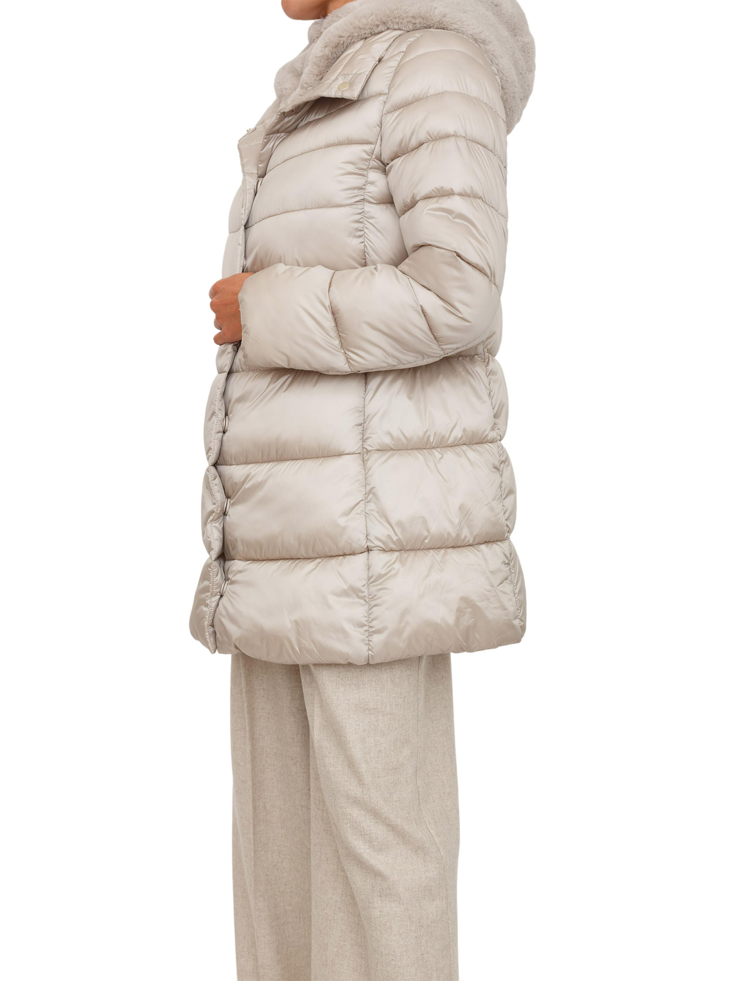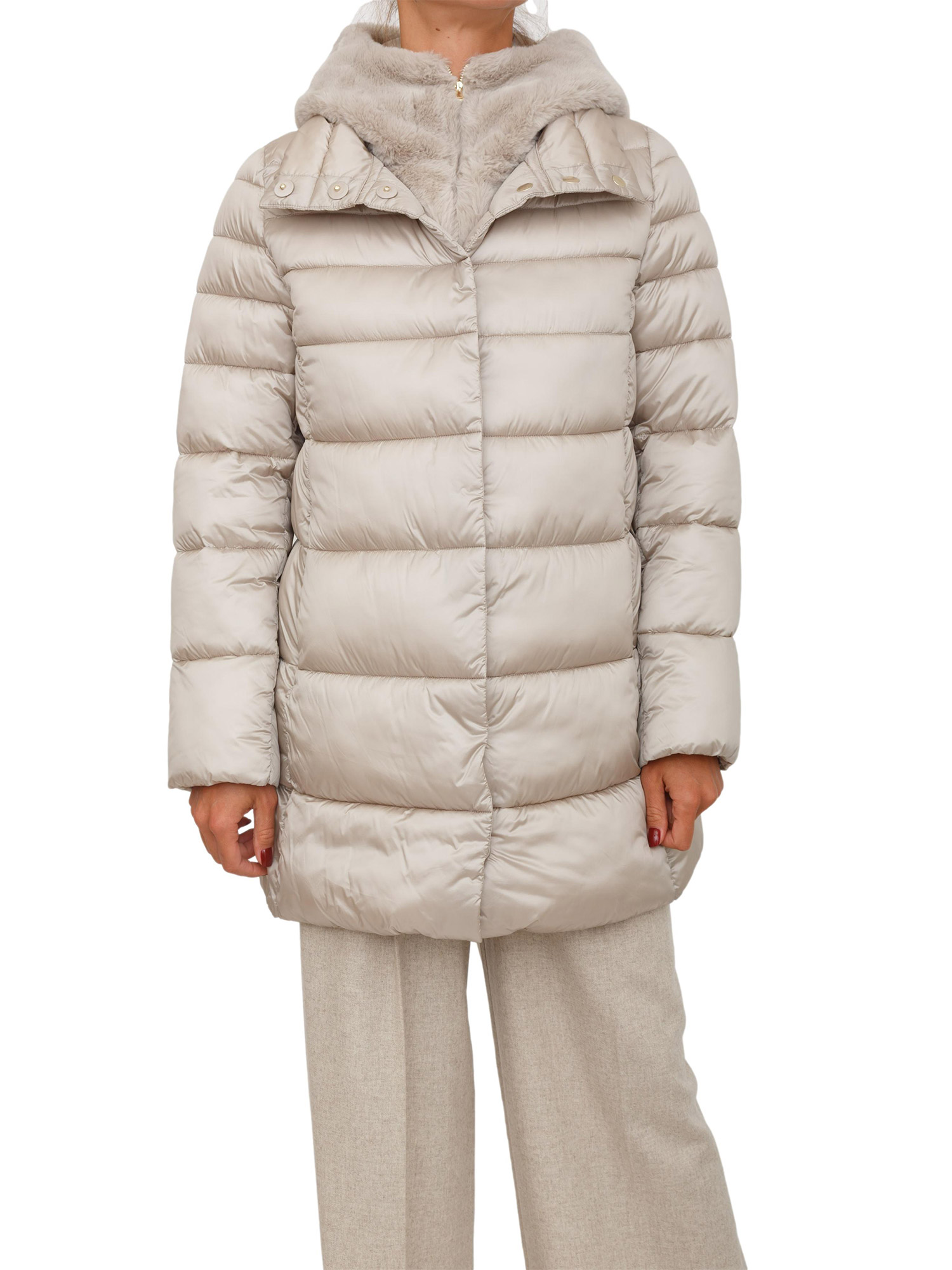 Giubbino Toscana Emme Marella in tessuto grigio beige con cappuccio pelliccia
