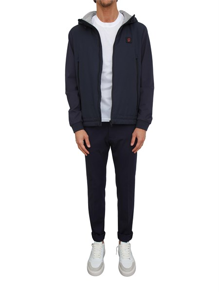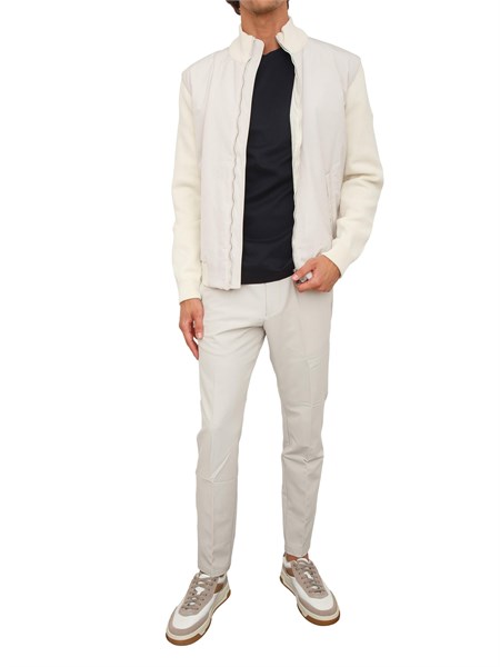 Blouson con collo classico stondato e zip frontale di chiusura. Realizzato in nylon a lavorazione matelassé con motivo rombi all over. La tasca a toppa effetto pelle con iconica aquila a rilievo e a contrasto completa con distinzione il modello.
