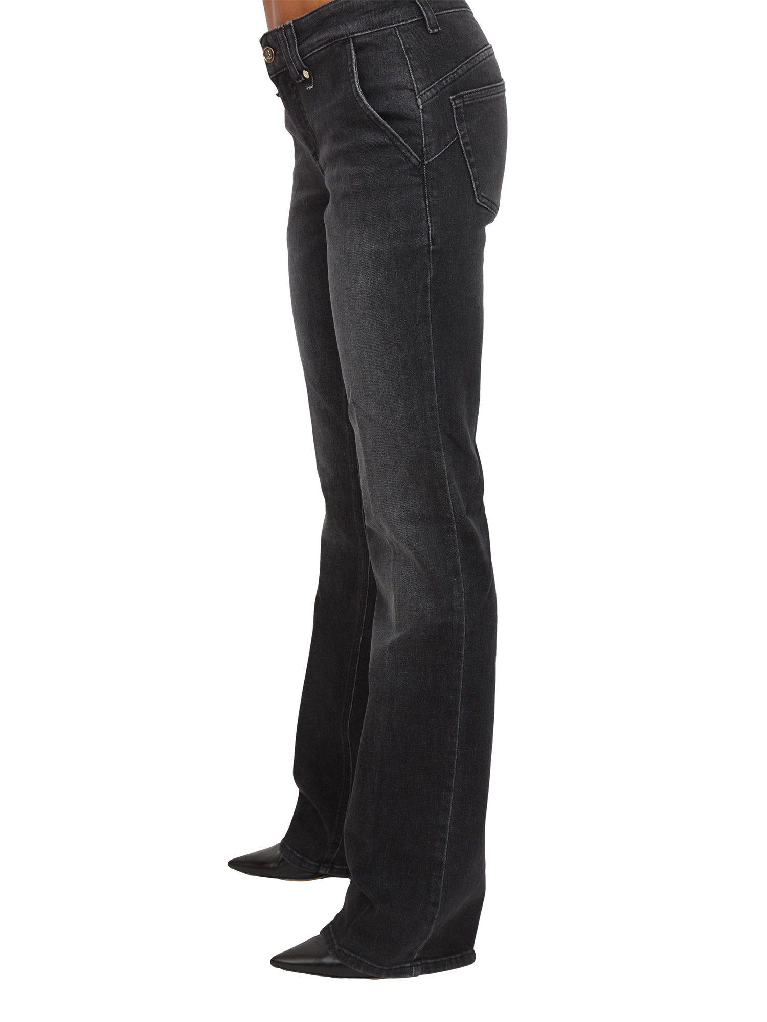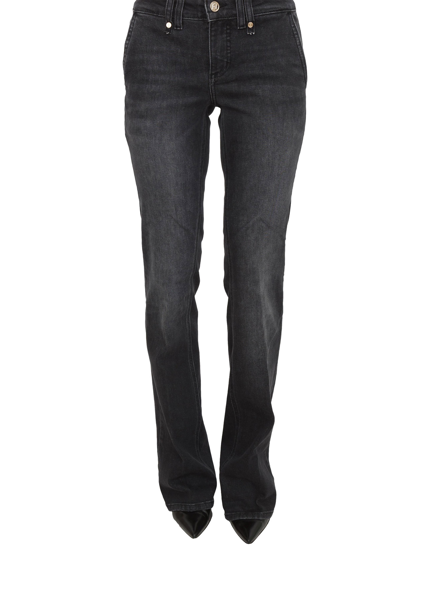 Brand: LIU JOJeans Liu Jo donna realizzati in denim di cotone stretch con tagli bottom up e lavaggio used. Modello a vita bassa, gamba slim che si allarga e salpa logata. La modella è alta 1.72 e indossa la taglia 26.