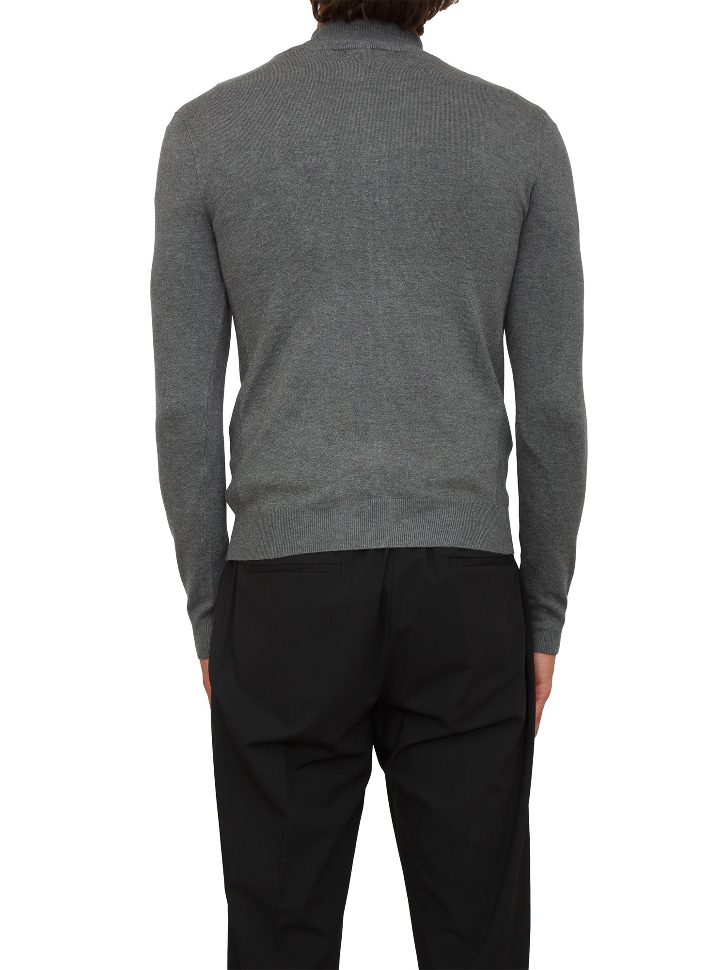 Maglia Antony Morato slim fit in misto viscosa grigia con patch logata e zip