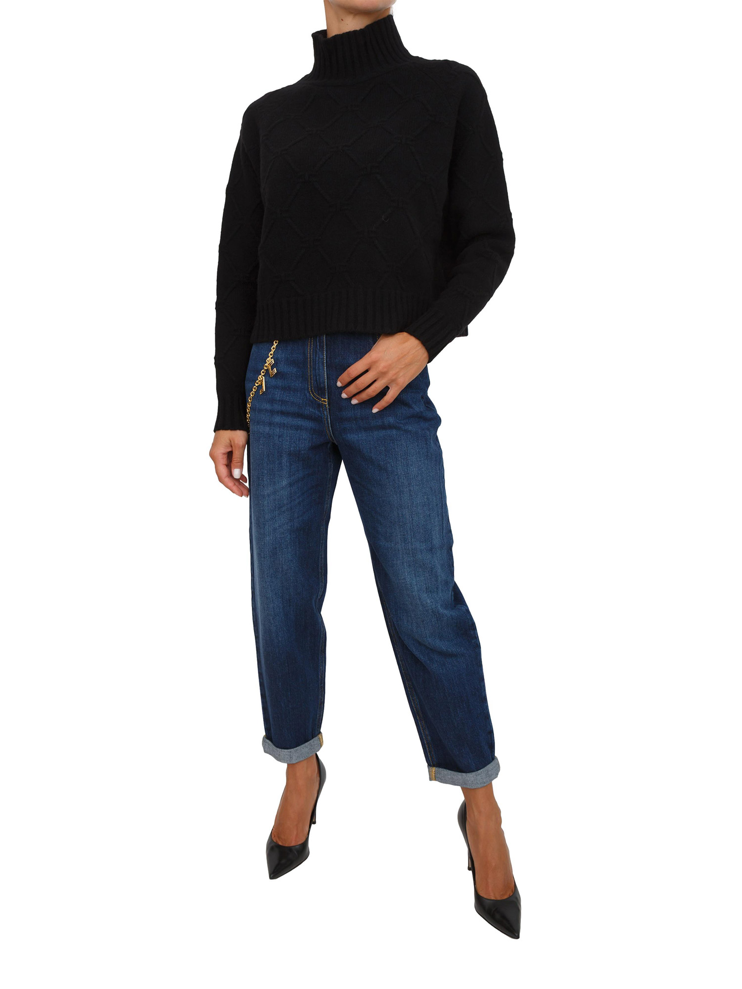Pullover Elisabetta Franchi con losanghe jacquard in maglia nera