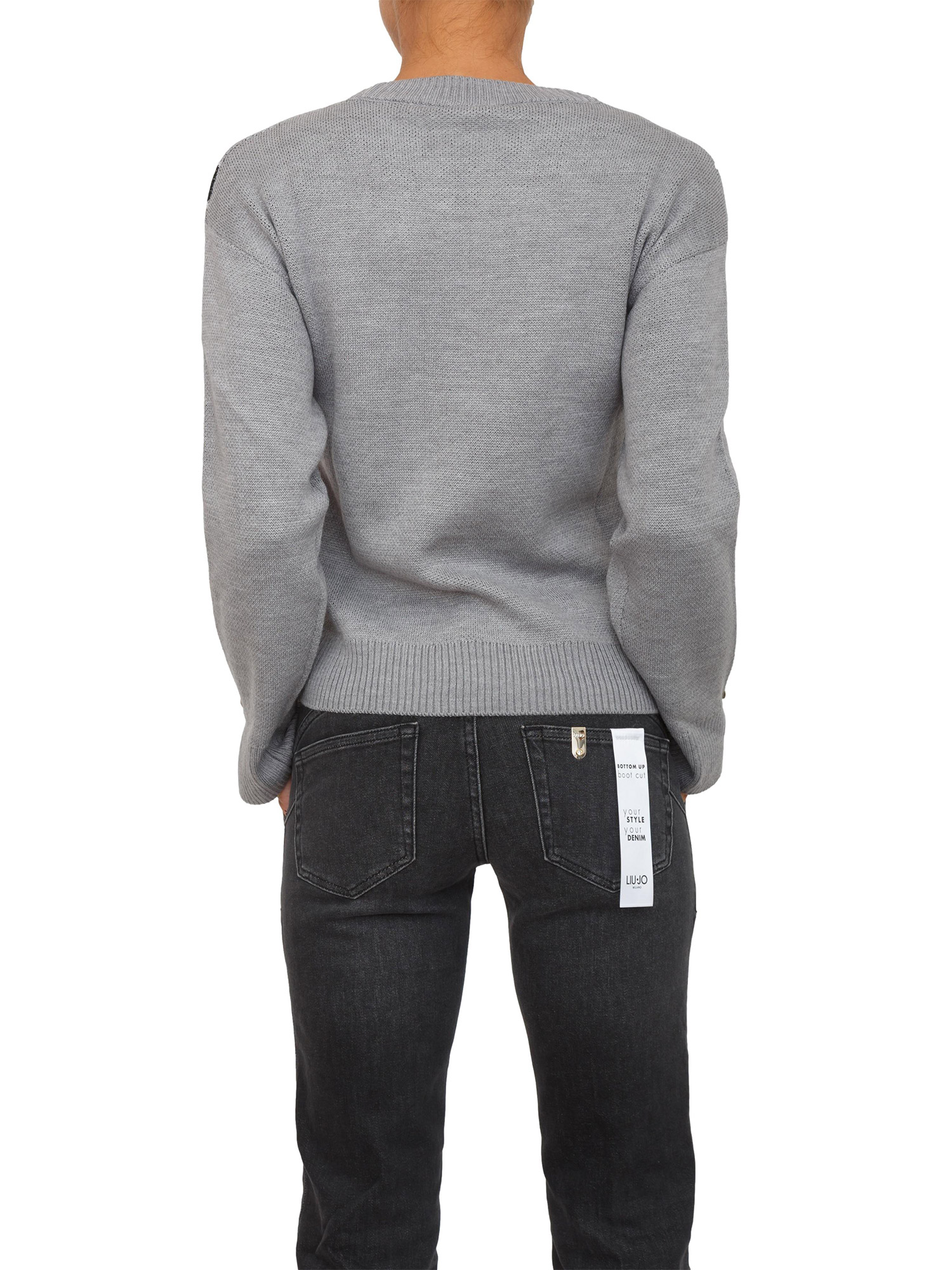 Maglia Liu Jo donna in lana grigia con logo jacquard strass e borchie