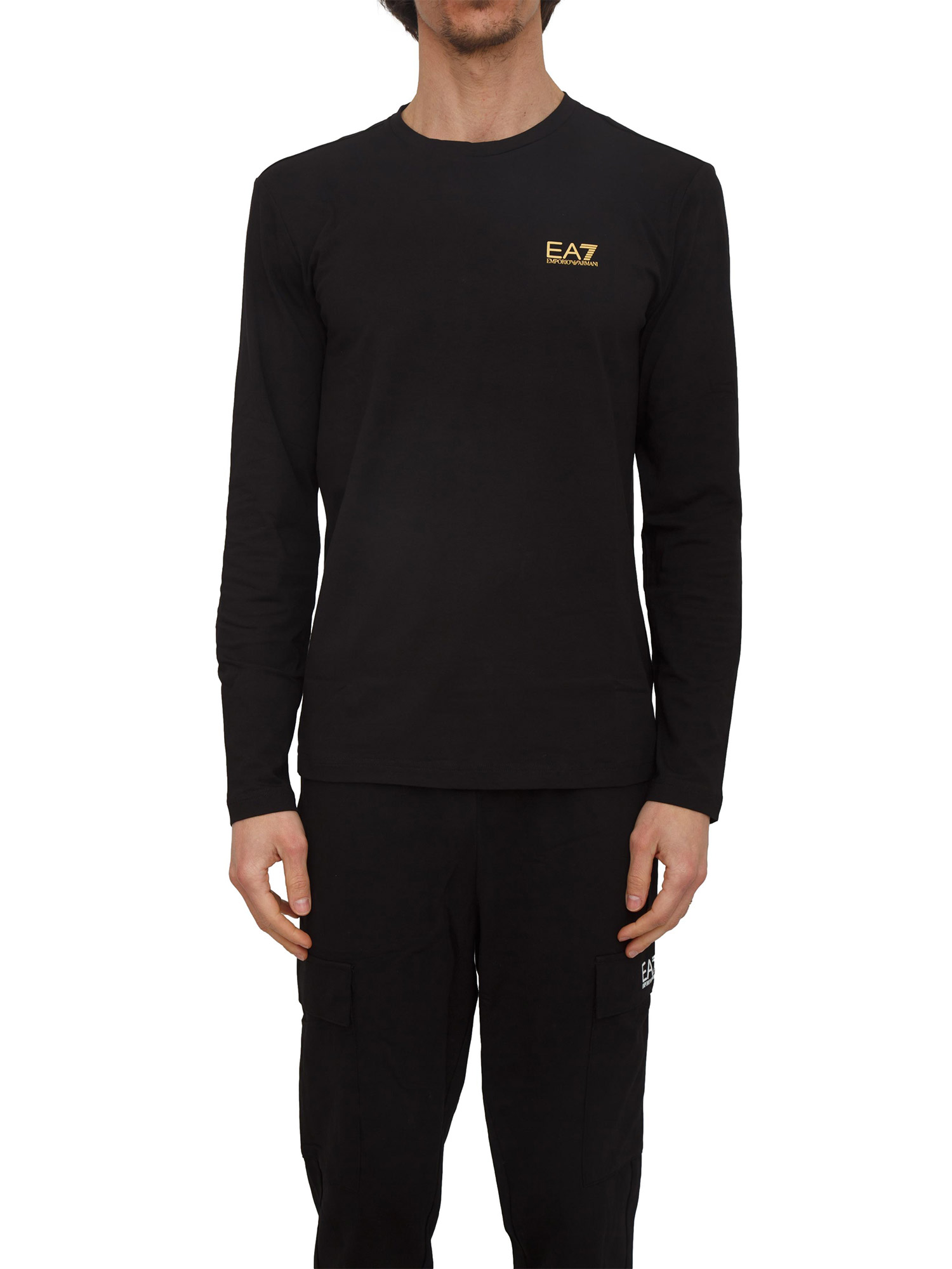 Brand: EA7 EMPORIO ARMANIT-shirt a manica lunga da uomo EA7 realizzata in cotone stretch con girocollo e logo in gomma applicato lato cuore.