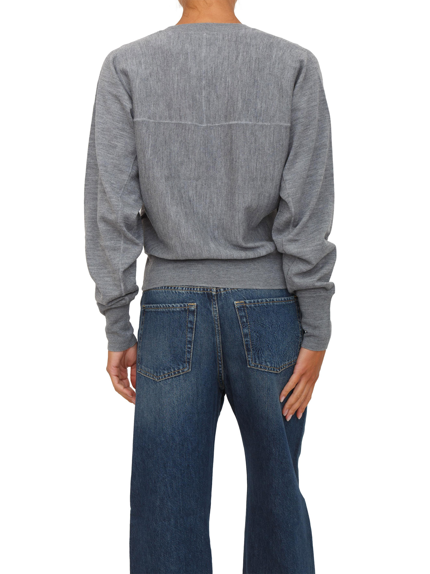 Maglia Pinko in lana merino grigia con logo a intarsio dÉvorÉ