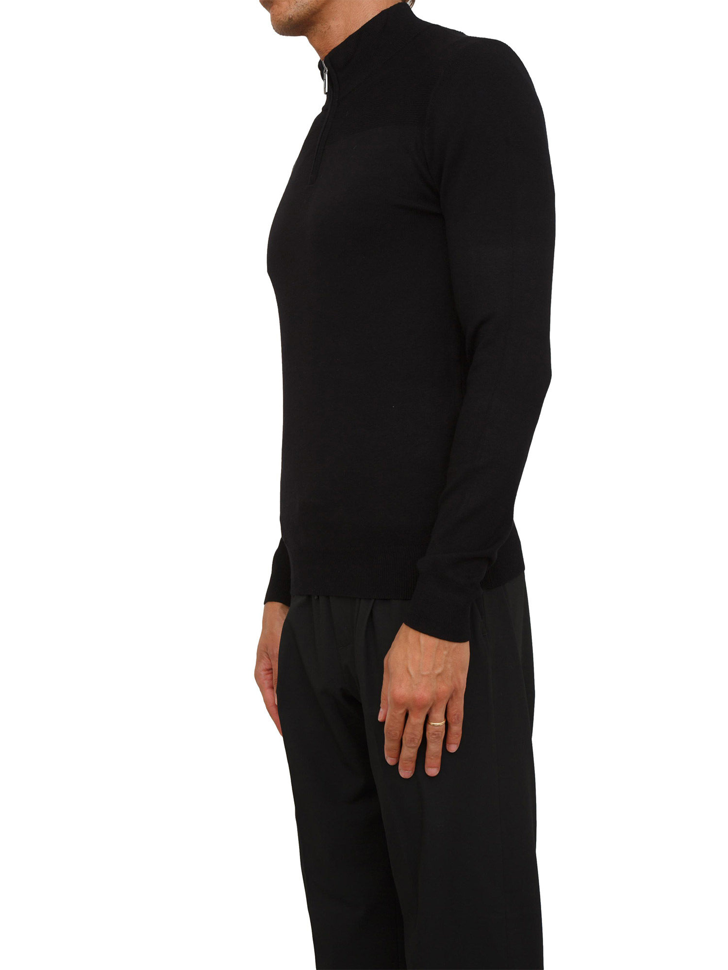 Maglia slim fit Antony Morato in misto viscosa nera con mezza zip