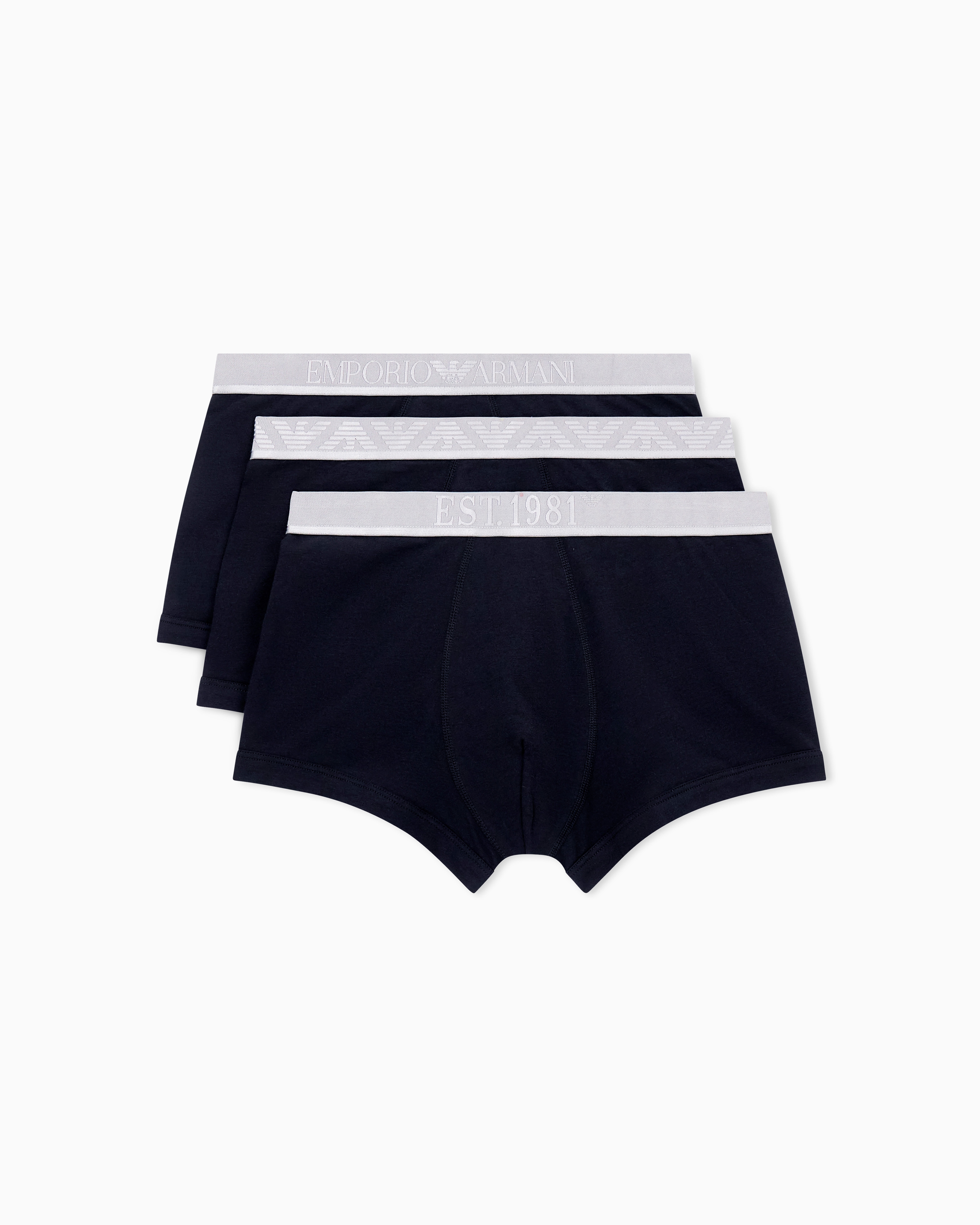 Brand: EMPORIO ARMANIPack composto da 3 boxer Emporio Armani realizzati in jersey elasticizzato di cotone realizzato con fibre naturali da agricoltura biologica. Vita elastica logata dal finish lucido.