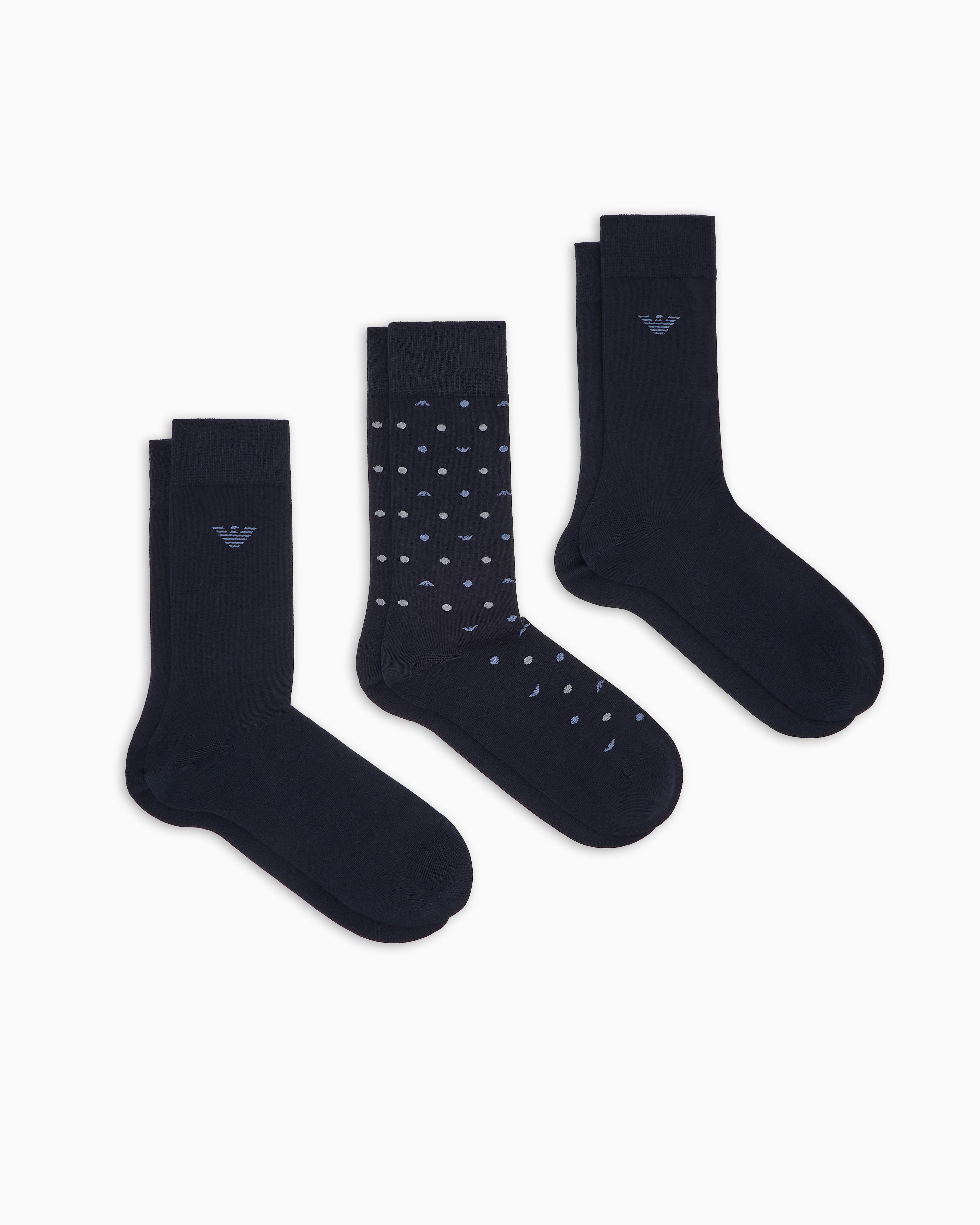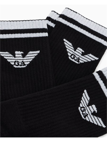 Brand: EMPORIO ARMANIPack composto da 3 paia di calzini Emporio Armani realizzate in cotone stretch con logo jacquard decorativo.