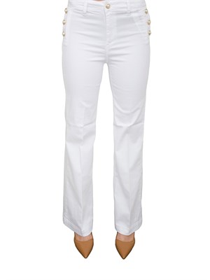 Pantaloni blu Liu Jo modello bottom up flare con bottoni gioiello