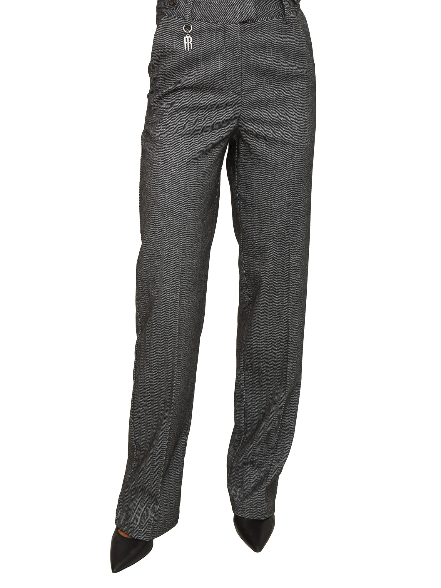 Brand: FRACOMINAPantalone donna Fracomina realizzato in tessuto spigato con vestibilità regular, vita alta e tasche laterali. Design caratterizzato da gamba dritta con piega stirata avanti e dietro e chiusura zip nascosta. La modella è alta 1.72 e indossa la taglia 38.