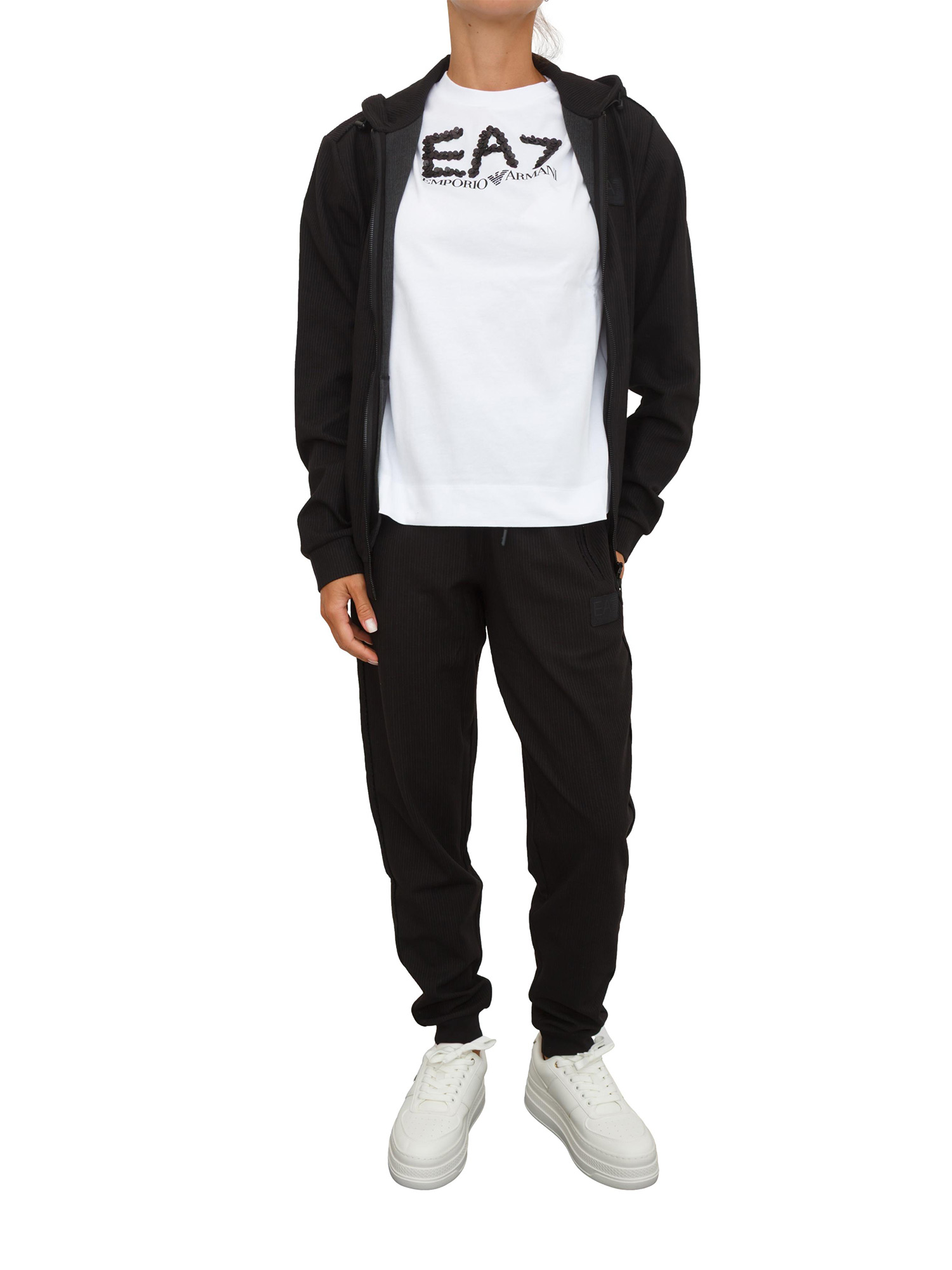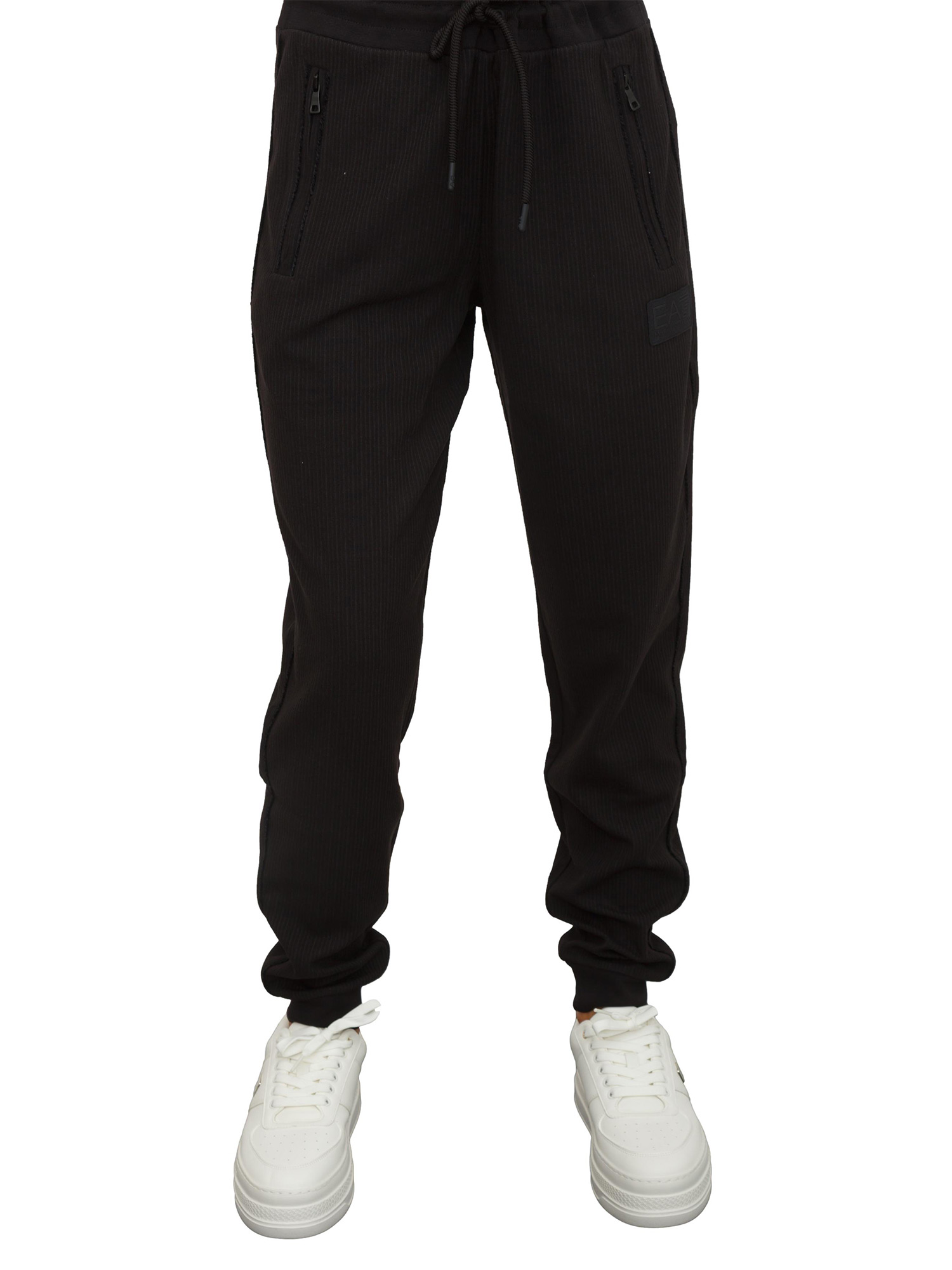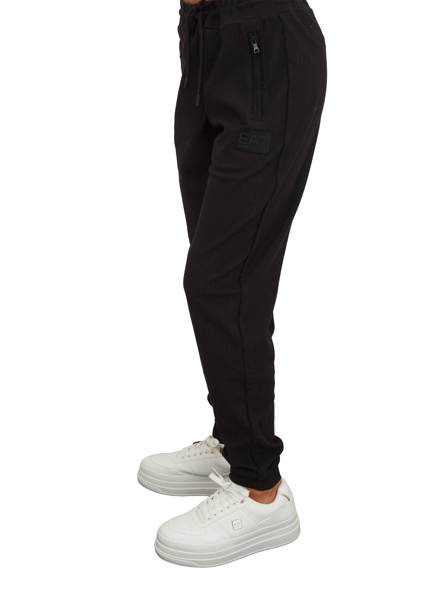 Pantalone tuta donna EA7 Emporio Armani in misto viscosa nero con trama canneté