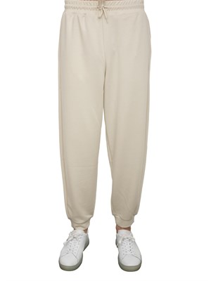 Pantaloni jogger realizzati in misto viscosa stretch, dalla vestibilità regular e il fitting unisex. Il modello, con elastico in vita con coulisse e due tasche laterali, è personalizzato dal patch gommato EA7 in tono sul retro che completa con distinzione il capo.