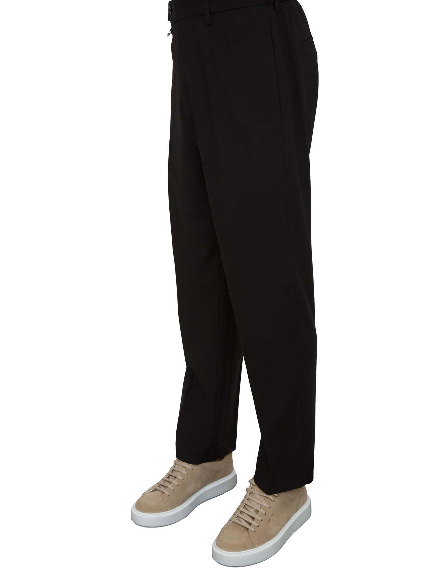 Brand: ANTONY MORATOPantaloni Antony Morato relaxed fit con gamba dritta fino al fondo, realizzati in twill misto viscosa e lana. Un modello confortevole, che unisce gusto sartoriale a vestibilità contemporanee. Parte posteriore con elastico, piega con stiratura centrale, chiusura con zip e bottone laterale, piccola linguetta metallica applicata sul passante frontale. Due tasche a filetto laterali e due posteriori. Il modello è alto 1.90m e indossa la taglia 48.