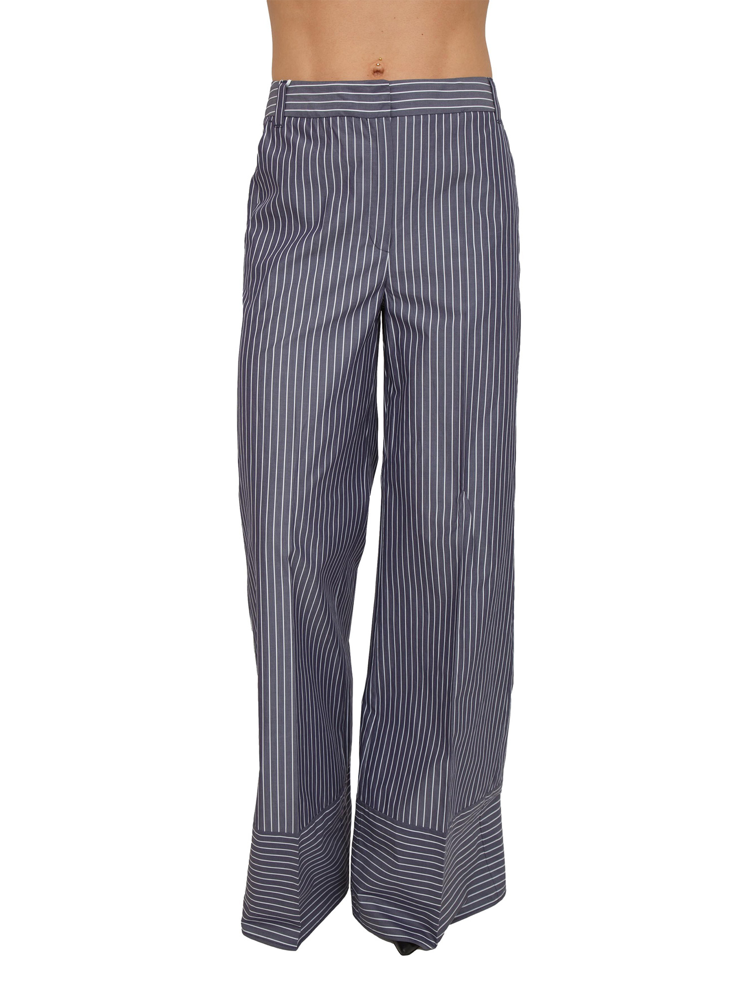 Brand: IBLUESPantaloni in popeline di cotone Iblorigine di iBlues con linea wide leg. Chiusura con gancio e zip nascosta, tasche alla francese davanti e taschino a filetto dietro. Vita con passanti, piega stirata e taglio orizzontale sul fondo gamba. Indossali con il top abbinato. La modella è alta 1.72 e indossa la taglia 40.