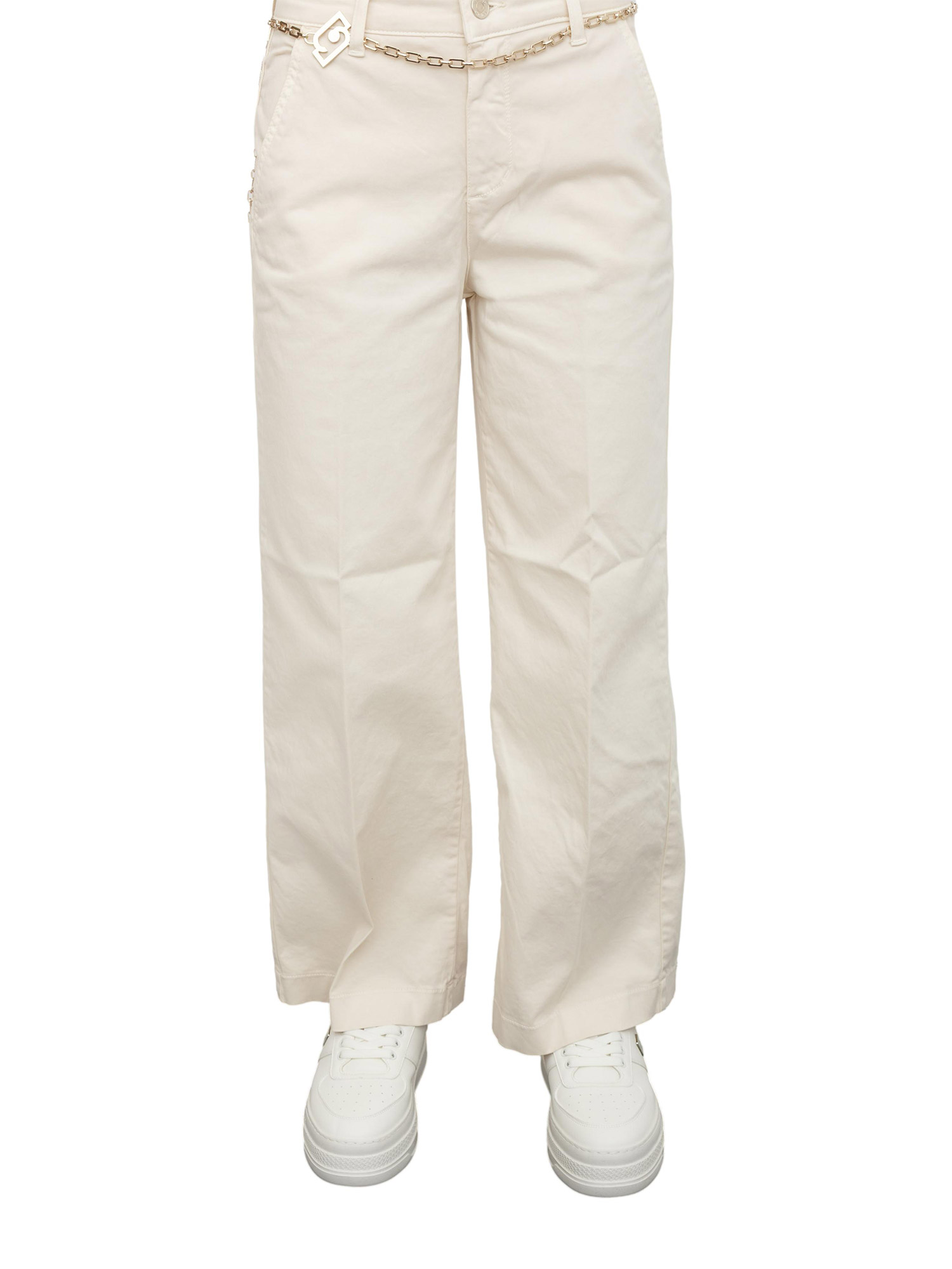 Pantaloni Liu Jo donna in cotone avorio con cintura dorata