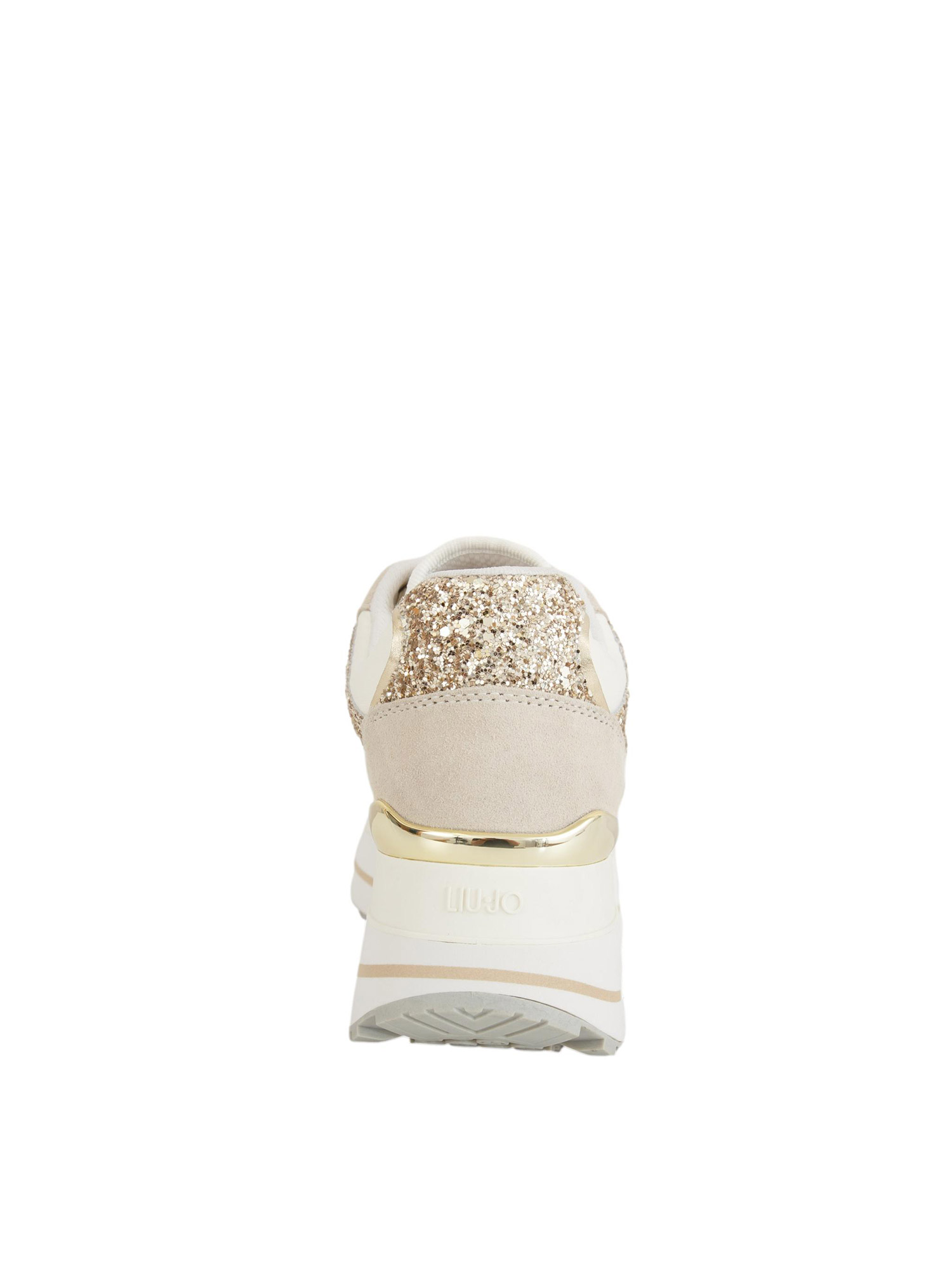 Sneakers Liu Jo donna in glitter e nylon con inserti suede bianco e beige