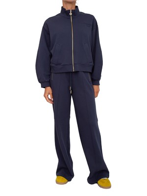 Brand: TWIN-SETTuta completa Twinset composta da felpa con zip dal fit regular e maniche a pallncino e pantaloni dal taglio dritto. La modella è alta 1.72 e indossa la taglia S.