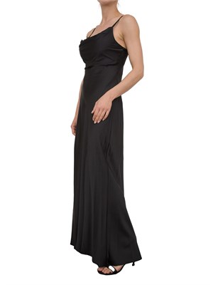 Abito lungo Guess Jeans in raso stretch nero con scollo con pizzo