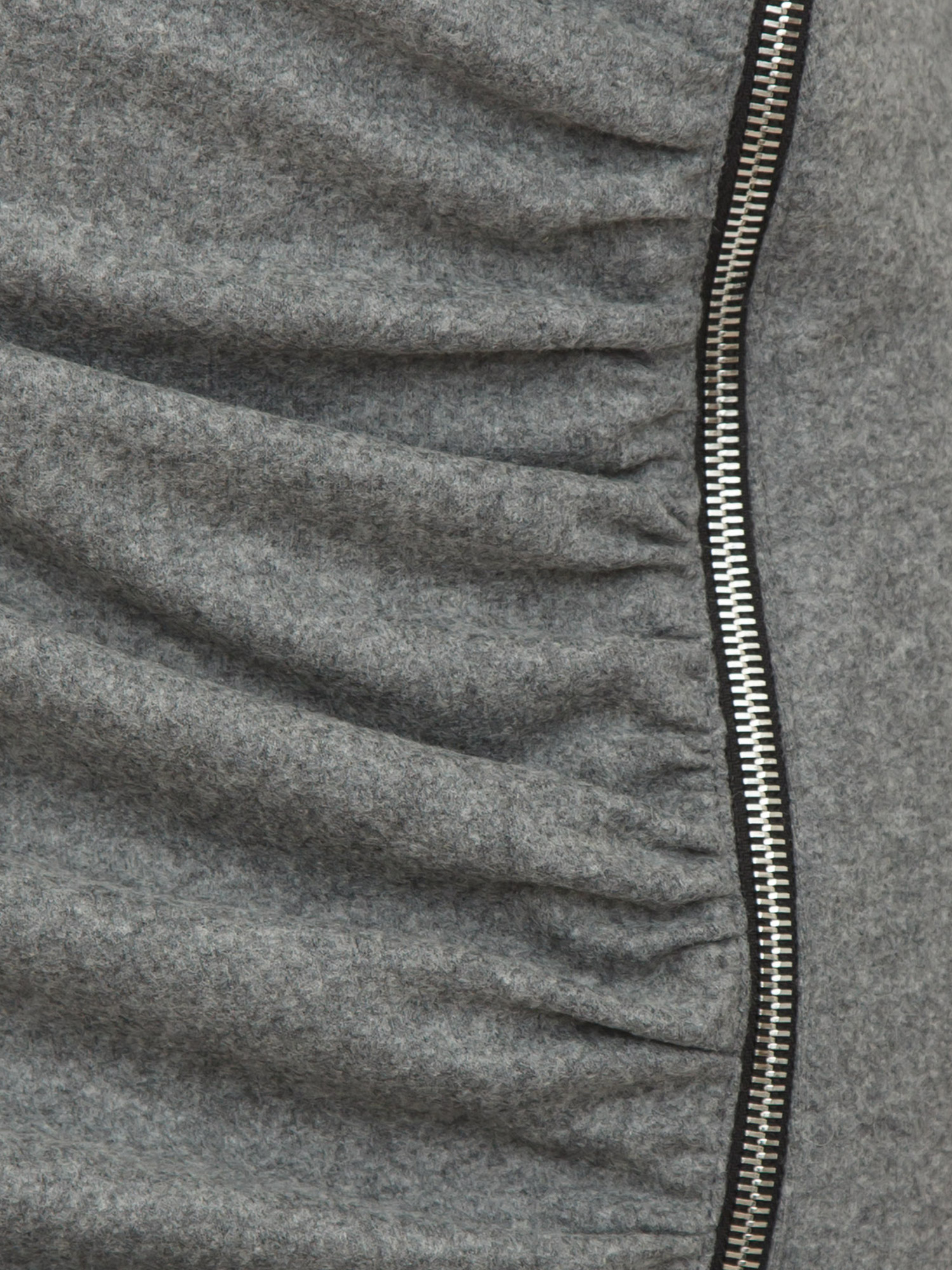 Abito Pinko in flanella di lana grigia aderente con drappeggio e zip