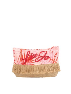 Pochette donna Liu Jo in tessuto fantasia verde e rafia con frange
