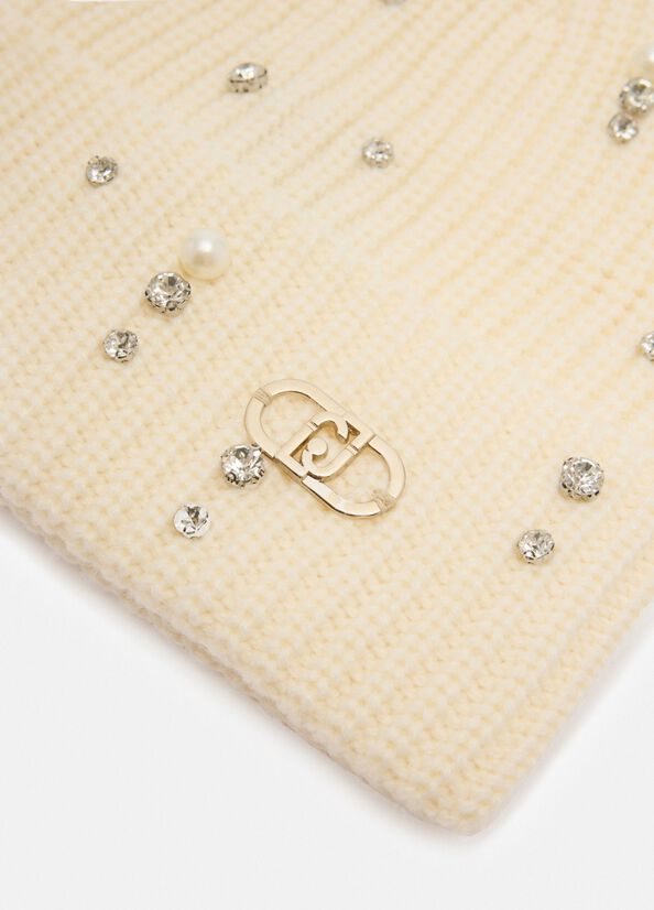 Berretto beanie Liu Jo bianco con strass e perle
