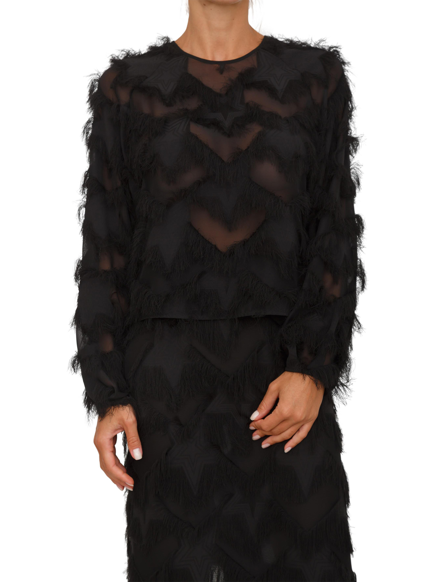 Blusa Marella in georgette nera lavorata in fil coupé effetto frangia