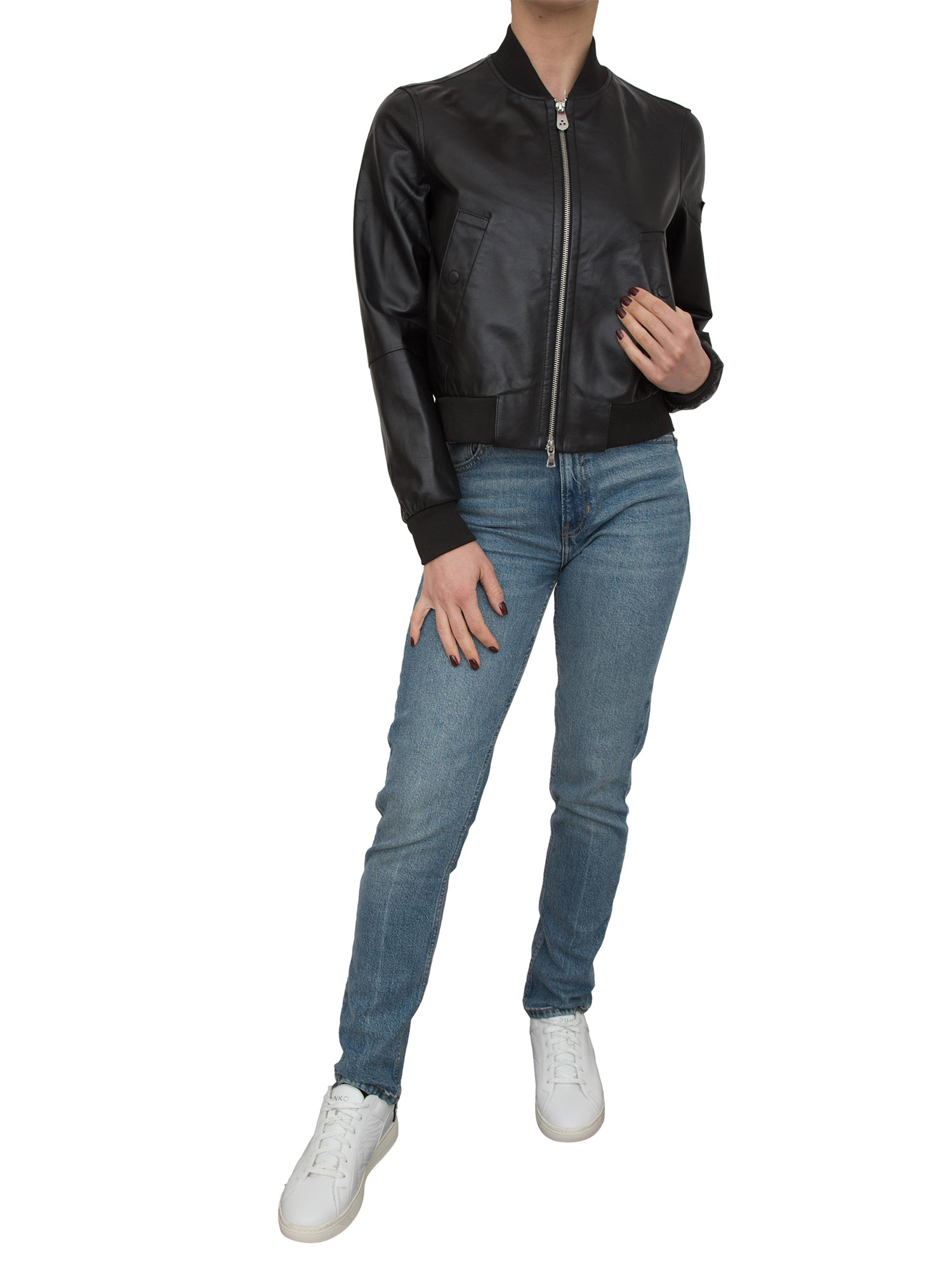 Brand: PEUTEREYBomber realizzato in nappa tinta morbida e confortevole, caratterizzato da una vestibilità slim che valorizza la silhouette. Dettagli iconici come full zip a doppio cursore, le tasche laterali con chiusura bottoni a pressione e la personalizzazione tono su tono Peuterey sulla manica sinistra.
