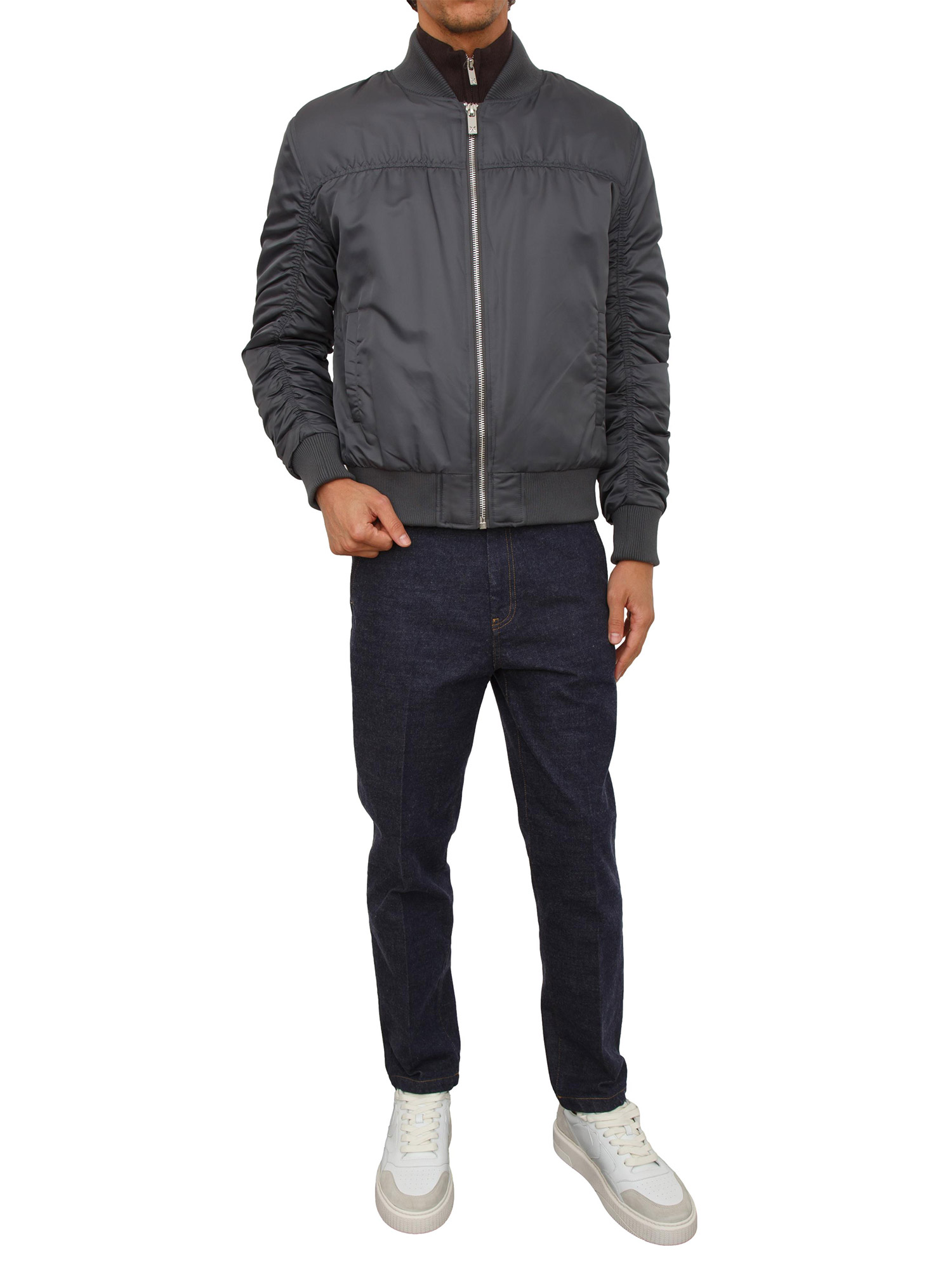 Bomber Richmond X uomo in tessuto grigio con maniche arricciate