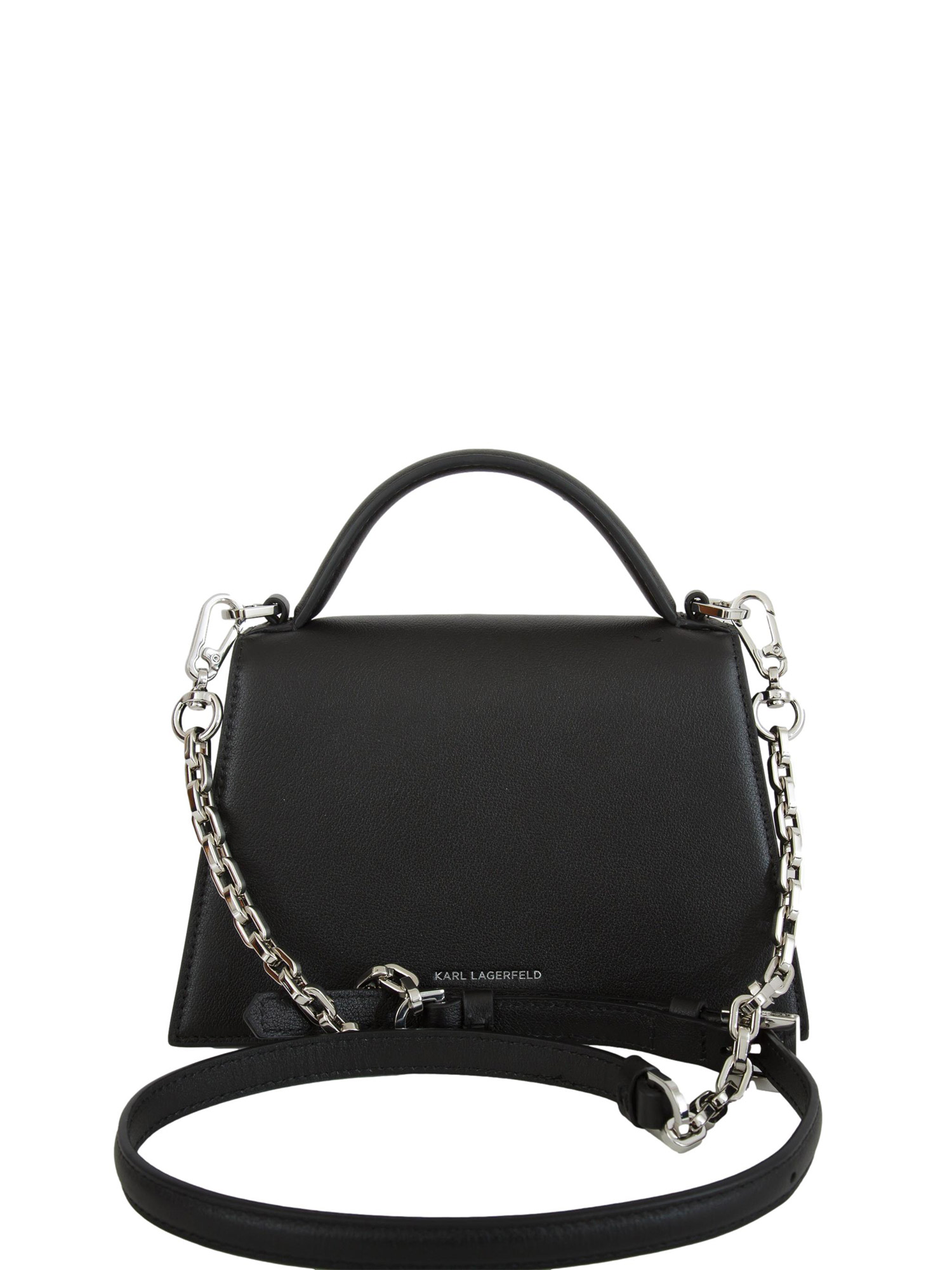 Brand: K.LAGERFELDLa piccola borsa a tracolla K/SIGNATURE Karl Lagerfeld è caratterizzata da linea trapezoidale e dettagli con logo diagonale sulla chiusura con patta. Chic e pratico, questo accessorio è impreziosito da catena staccabile e cinturino in pelle liscia. Dimensioni: 21,5x13,5x10 cm